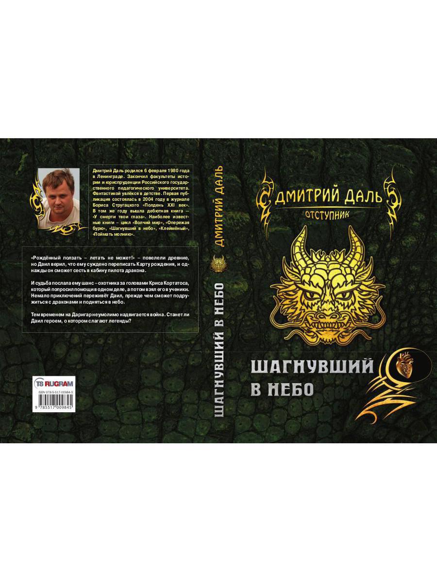 Handling time: 19 days Автор: Даль Дмитрий, «Шагнувший в небо»: «Рождённый ползать – летать не может!» – повелели древние, но Даил верил, что ему суждено переписать Карту рождения, и однажды он сможет сесть в кабину пилота дракона. И судьба послала ему шанс – охотника за головами Криса Кортатоса, который попросил помощи в одном деле, а потом взял его в ученики. Немало приключений переживёт Даил, прежде чем сможет подружиться с драконами и подняться в небо. Тем временем на Даригар неумолимо надвигается война. Станет ли Даил героем, о котором слагают легенды?