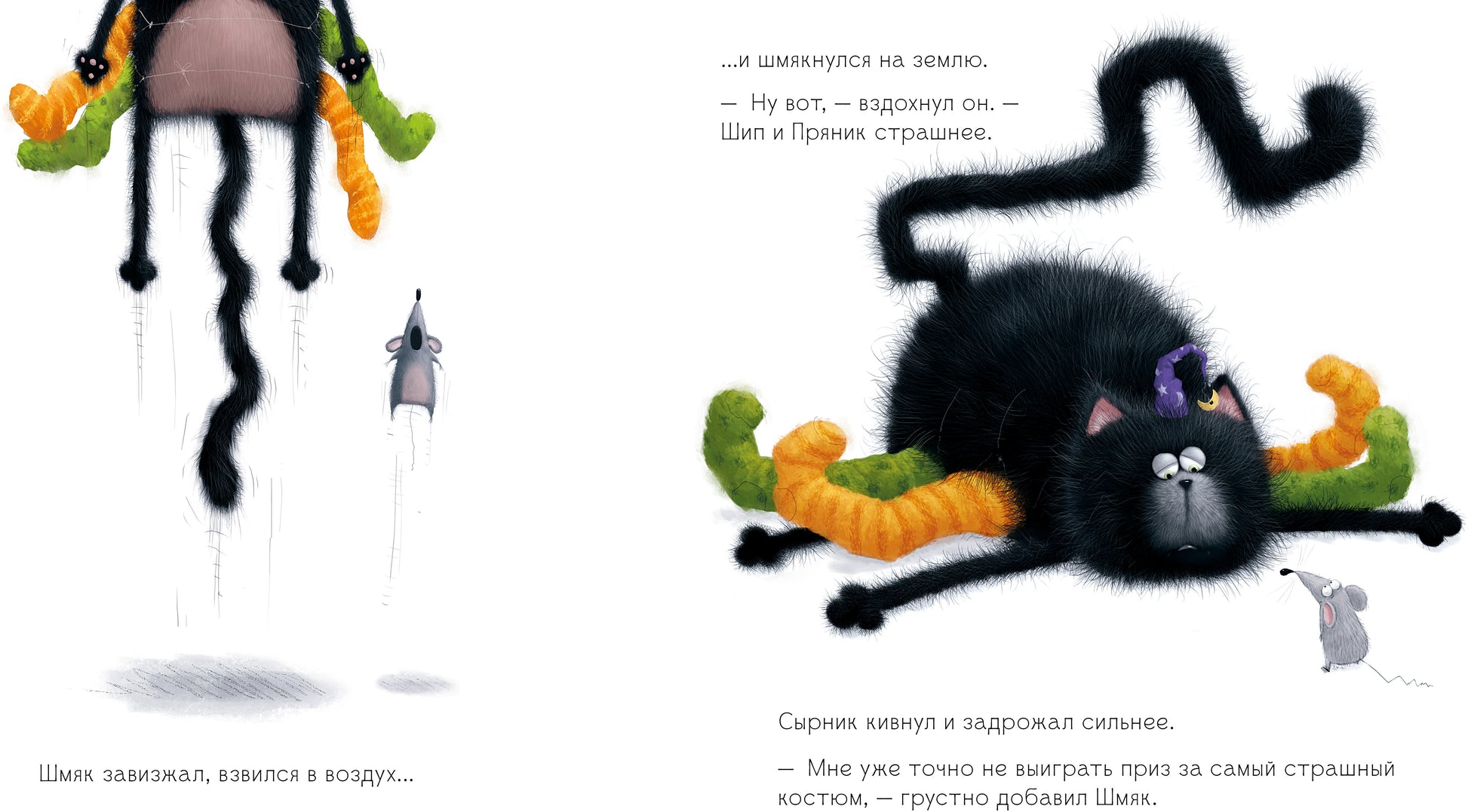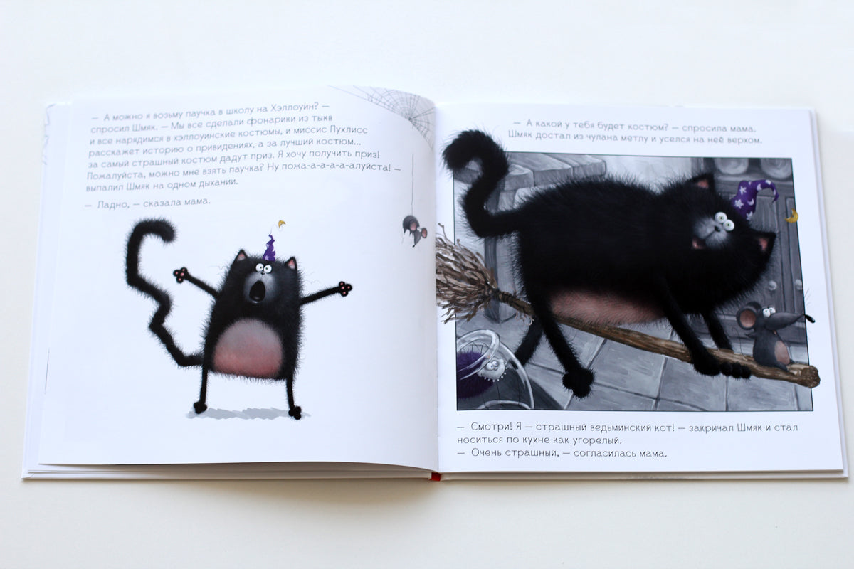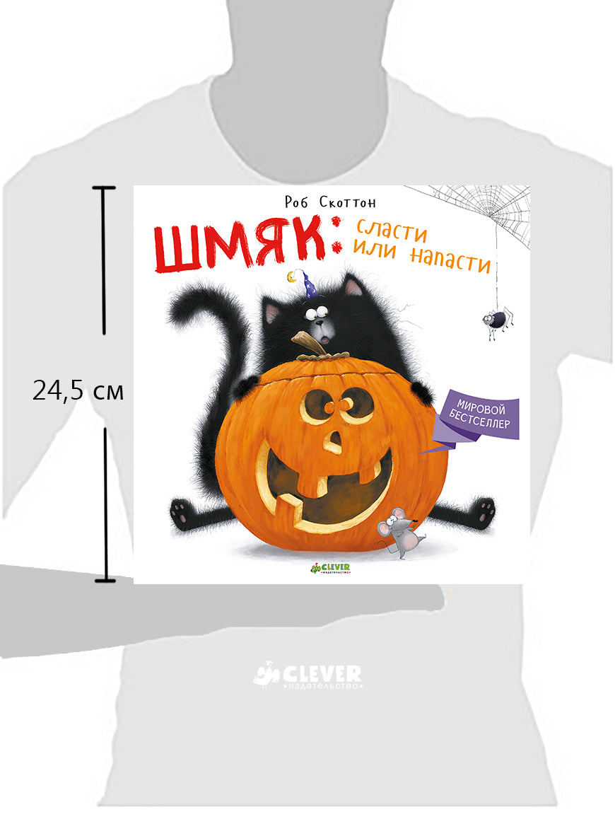 Handling time: 19 days «Всё таинственное ужасно притягивает малышей вроде котёнка Шмяка. Страшно? Нет, невероятно интересно!» Екатерина Керова,  главный редактор журнала  «Счастливые Родители. Журнал для мам и пап» Что вас ждет под обложкой: Очередная новинка о любимом котенке, который вместе со своими друзьями готовится отмечать Хэллоуин. В программе страшные истории при свете фонариков из тыкв и приз за самый пугающий образ. Шмяк очень хочет победить в конкурсе, но не знает как... Ведь сам он боится даже маленького паучка, метла сломалась, а его маскарадный костюм вызывает только смех. Внезапно во время рассказа ужасных историй начался настоящий переполох, и когда миссис Пухлисс включила свет… Гид для родителей: Новая книга «Шмяк: сласти или напасти» станет веселым приключением для детей в возрасте от 3-5 лет. Вы можете читать новинку вместе с детми, или предложить ребенку почитать книгу самостоятельно – веселые картинки и простой слог подойдут для первого чтения как нельзя лучше! Мировой бестселлер детской литературы впервые издается на русском языке! Невероятные приключения котенка Шмяка, который давно известен нам из интернета, интересные иллюстрации и незабываемые герои сделают эту книгу самой любимой! Соберите все поучительные истории о незабываемом персонаже – котенке Шмяке.  Изюминки книжки: • Продолжение супер успешной серии «Котенок Шмяк». • Тираж первой книги продан за 3 недели! • Автор Роб Скоттон – знаменитый детский писатель и художник. • Небольшой удобный формат – можно взять книгу с собой. • Отличное качество полиграфии, твердая обложка, плотные страницы.  • Идеальная книжка для первого самостоятельного чтения!