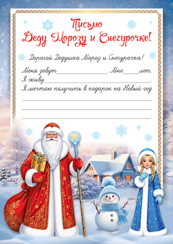 Handling time: 24 days Подарите своему ребёнку настоящее новогоднее чудо! Пусть он напишет письмо Деду Морозу и Снегурочке и получит персональный ответ с поздравлением и подарками!