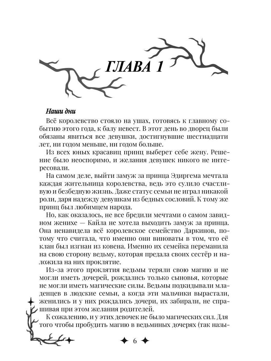 Handling time: 19 days Автор: Бор Валери, «Эдиргемская ведьма»: Сто лет назад на клан Флэр было наложено проклятие, и ведьм изгнали из ковена. Чтобы снять проклятие и вернуться в ковен, ведьмы принесли в дар девять жизней, в обмен на одну. Теперь Кайла обязана им жизнью и должна снять проклятие, украв ритуальный камень из королевского дворца. Однако все идет не по плану, когда наследный принц берет ее жены. Более того, между молодыми людьми вспыхивает любовь. Но что выберет Кайла: любовь или долг перед кланом? И примет ли принц свою возлюбленную, узнав, кто она такая и что на самом деле забыла в его дворце? На страницах этой книги вас ждут любовь, предательства, семейные тайны и магические ритуалы.