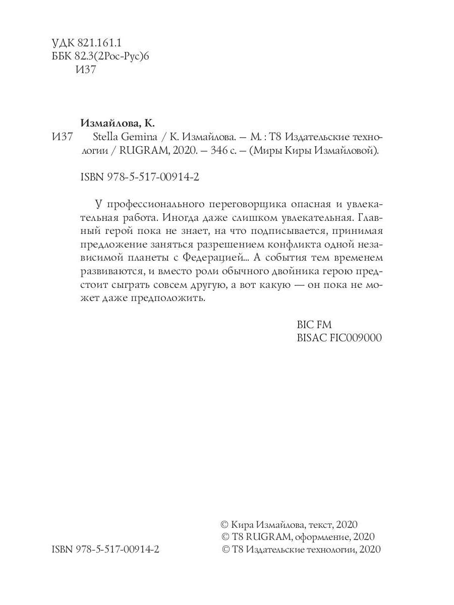 Handling time: 19 days Автор: Измайлова Кира, «Stella Gemina»: У профессионального переговорщика опасная и увлекательная работа. Иногда даже слишком увлекательная. Главный герой пока не знает, на что подписывается, принимая предложение заняться разрешением конфликта одной независимой планеты с Федерацией... А события тем временем развиваются, и вместо роли обычного двойника герою предстоит сыграть совсем другую, а вот какую — он пока не может даже предположить.