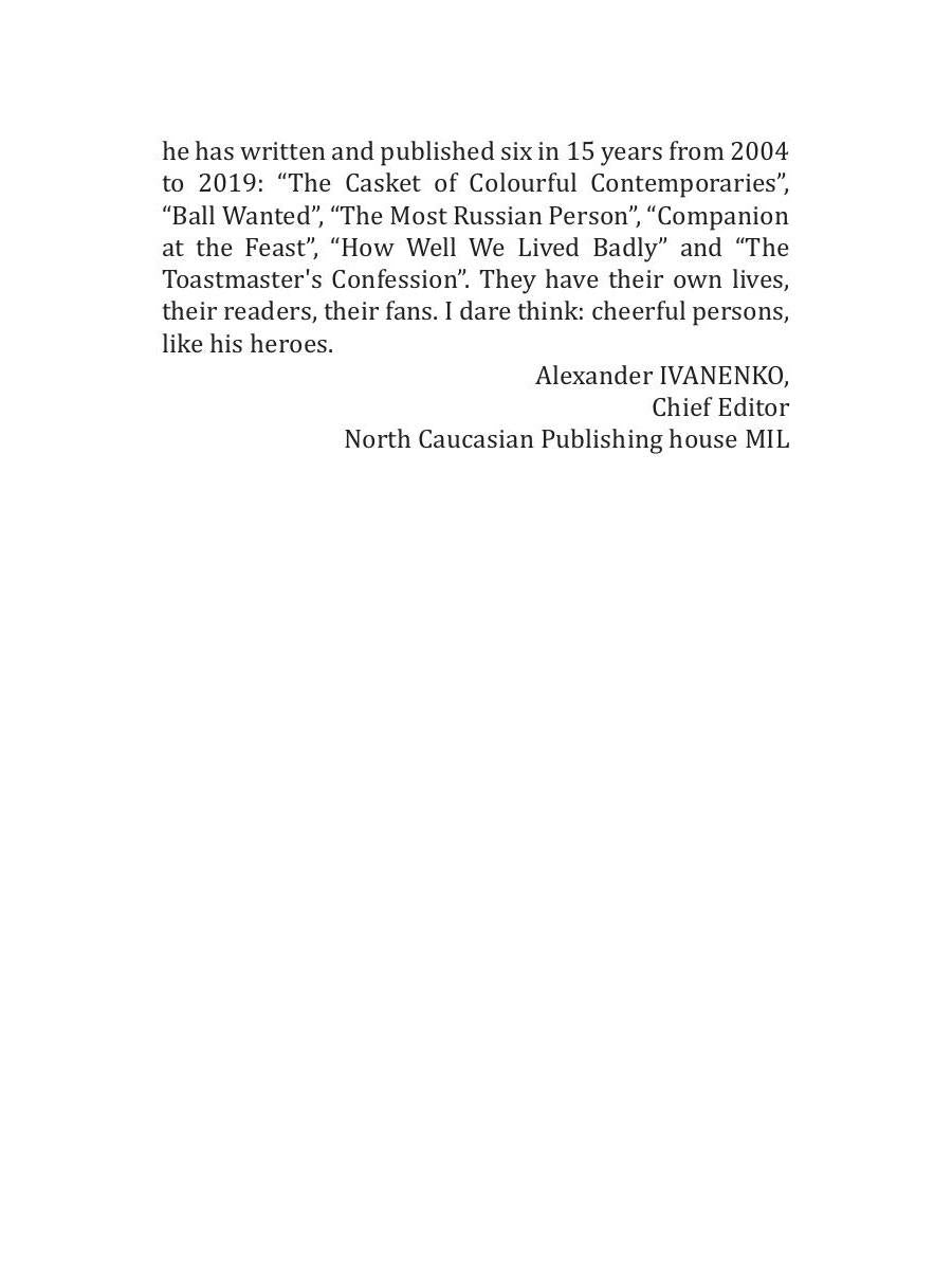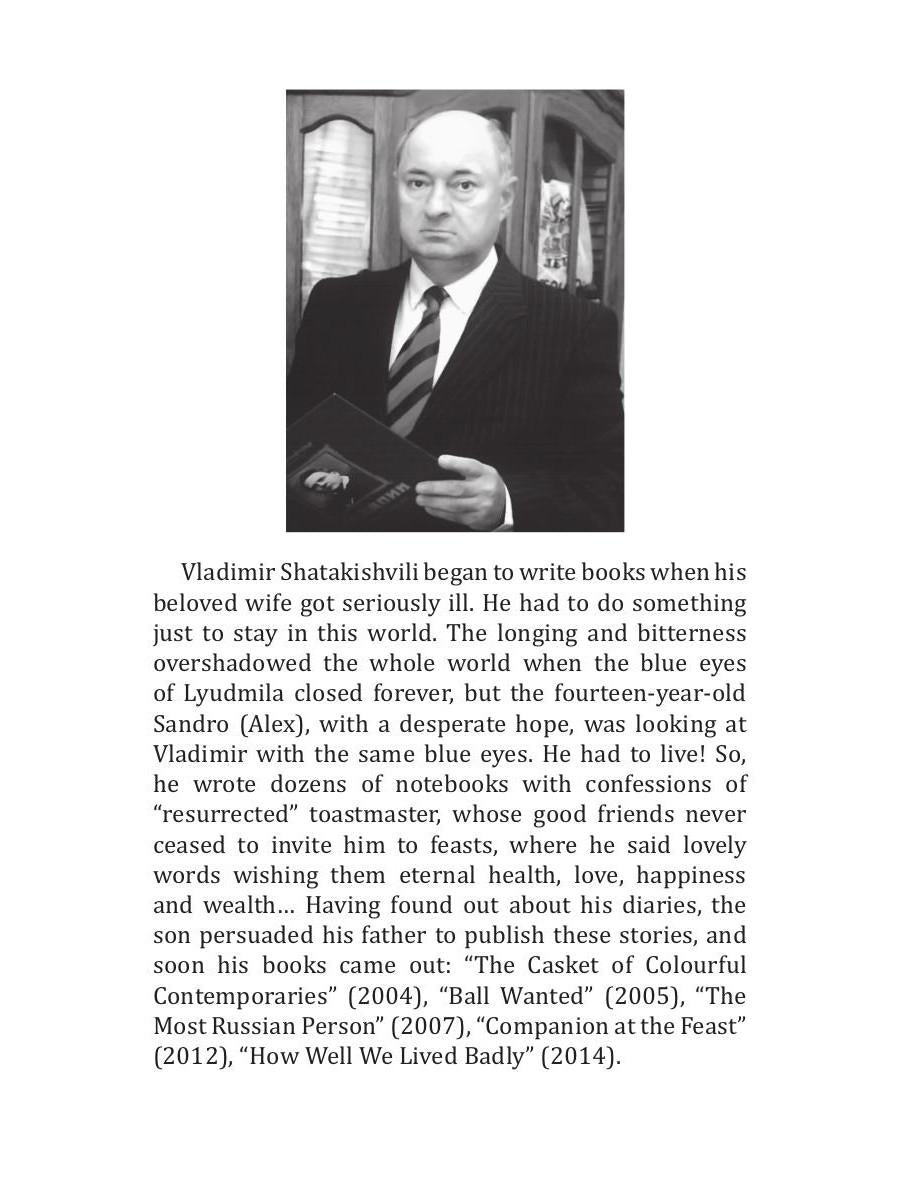 Handling time: 14 days Автор: Шатакишвили В., «The Most Russian Person: на англ.яз»: The generation that matured in the thirties of the last century fell on unprecedented ups and upheavals. All of them passed throught the heart of Ivan Nikiforovich Medyanik. New cities are associated with his name: Ozersk in the Urals and Lermontov in the Caucasus. Whoever he has not been in his life: a blacksmith, tinker, driver, tractor driver, tankman, pilot, battalion commander, and senior manager who performed importand tasks of the government. When many documents were declassified today, it became known that I.N. Medyanik is involved in those who created the country`s nuclear shield. "The Most Russian Person" is one of the documentary stories of V.A. Shatakishvilli, dedicated to famous people, participants and creators of history, people of amazing fate, whose meetings gave him life. Satakishvilli is objective and at the same time delicate, he speaks with enthusiasm and interest. His work is full of wisdom and joy, in a simple and an engaging way it conveys to the reader the impressions of the author and with them – the realities of the old, already unfamiliar life.