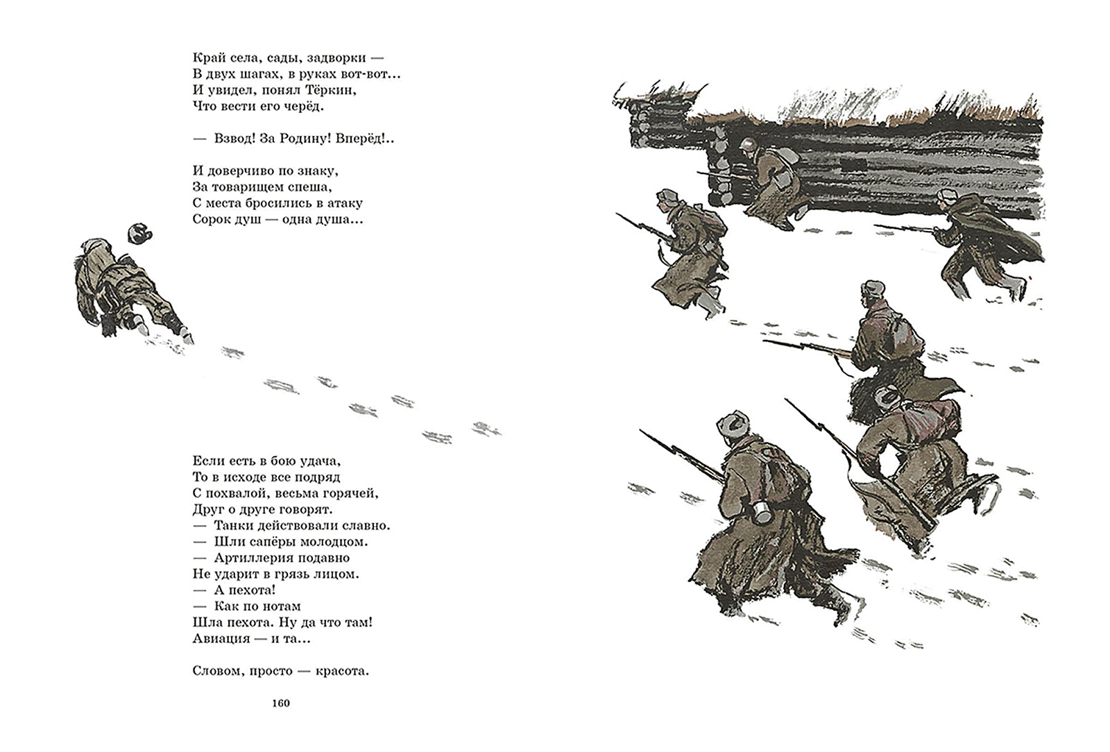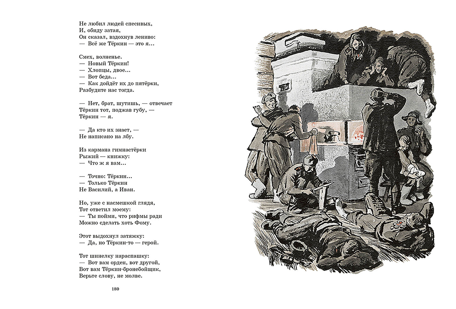 «Василий Тёркин» — настоящая фронтовая поэма, написанная военкором Александром Твардовским прямо на передовой. В Тёркине воплотились главные черты русского национального характера: смелость и добродушие, смекалка и бесшабашность, самоотверженность и хозяйственность. Рядовые и офицеры видели в главном герое не вымышленного персонажа, а боевого товарища. Бывшие фронтовики