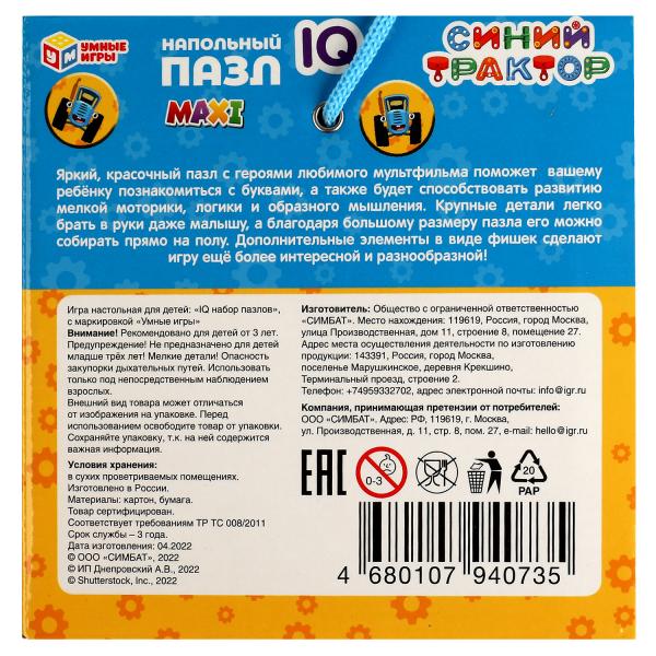 АЗБУКА. Синий трактор. Напольный пазл IQ max. 160х160х160мм. Умные игры в кор.18шт