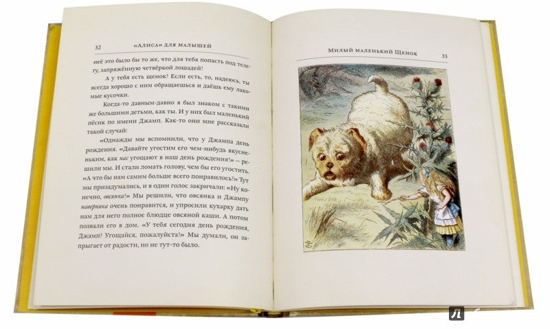 Спустя четверть века после первого издания бессмертной сказки Льюиса Кэрролла "Приключения Алисы в Стране чудес" сам автор пересказал её для маленьких читателей - "от нуля до пяти". Сэр Джон Тенниел, на основе своих черно-белых иллюстраций к книге об "Алисе", нарисовал новые, увеличенные, слегка изменённые цветные иллюстрации, а известный гравировщик викторианской эпохи Эдмунд Эванс создал на их основе деревянные гравюры и отпечатал с них цветные иллюстрации. Обложку книги нарисовала Гертруда Томсон. Книга подготовлена на основе английского издания 1890 года. Именно в таком виде книга впервые издаётся на русском языке. Как и в оригинальном издании, в нашей книге приводятся: вступительное стихотворение Льюиса Кэрролла "Милая детская", его предисловие, адресованное матерям, а также приложения - "Пасхальное приветствие" и стихотворение "Рождественское послание".