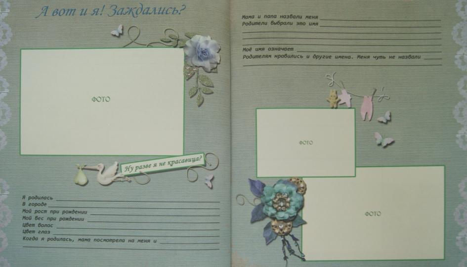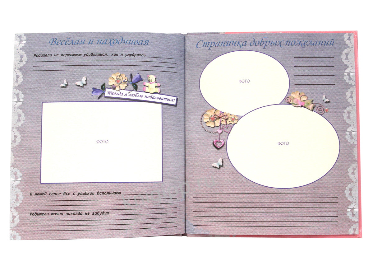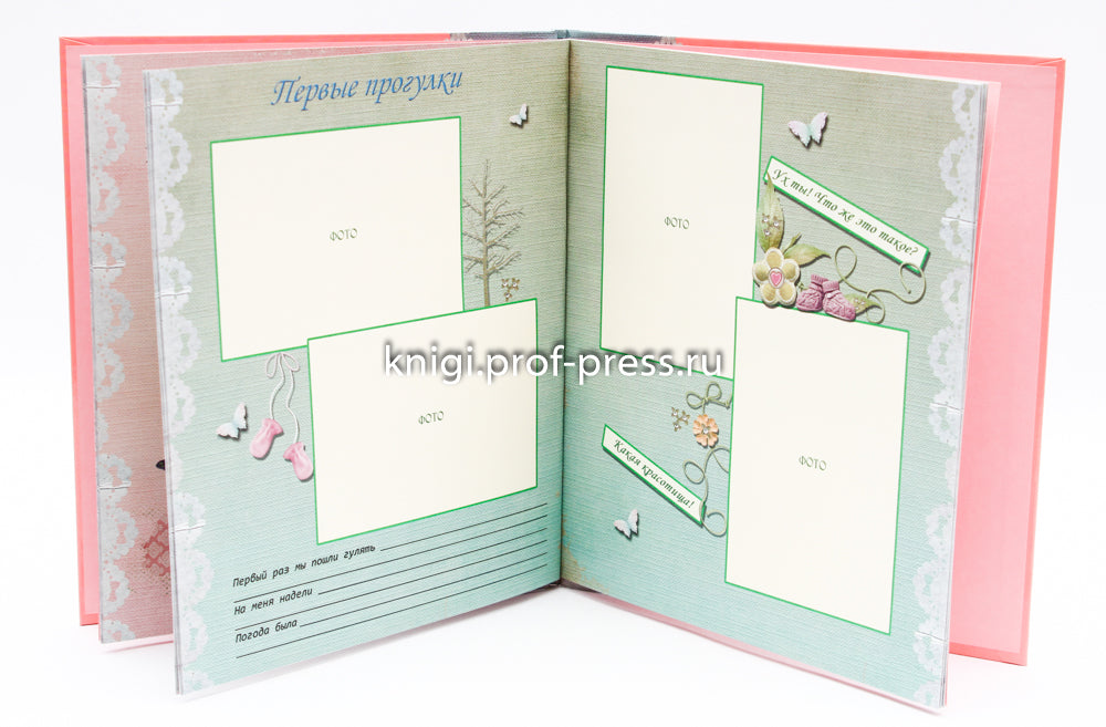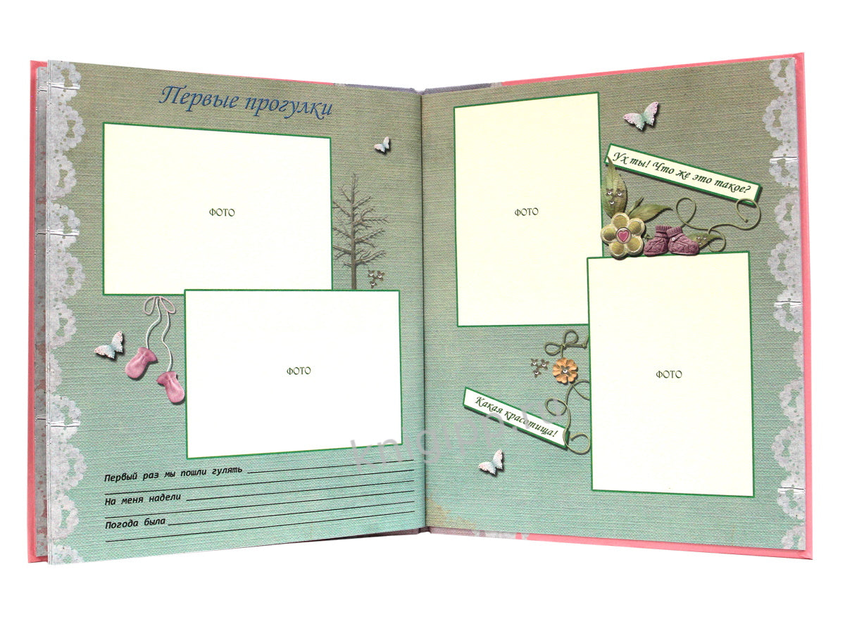Чтобы сохранить воспоминания о первых днях и месяцах жизни вашего крохи,удобнее всего будет собирать и вклеивать фотографии с важнейшими событиями в специальный альбом. Также рядом со снимками достаточно места,куда можно вписать свои комментарии и забавные истории, связанные с вашим малышом.