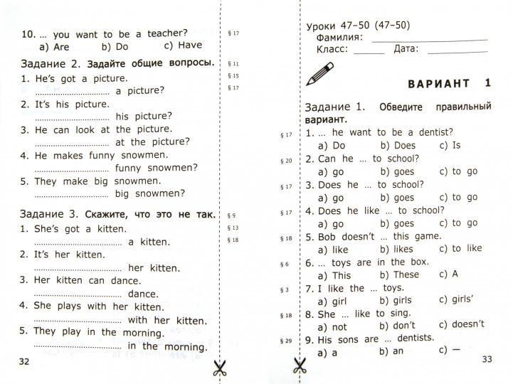 Данное пособие полностью соответствует ФГОС второго поколения (для начальной школы). Оно представляем собой четвертую часть учебного комплекта, состоящего из четырех книг:- Грамматика английского языка. Сборник упражнений. Часть 1- Грамматика английского языка. Сборник упражнений. Часть 2- Грамматика английского языка. Книга для родителей.- Грамматика английского языка. Проверочные работы.В пособие включены проверочные задания для контроля усвоения грамматического материала 2 класса. Каждая работа имеет четыре варианта.Дома учащиеся готовятся к проверочной работе, просматривая все четыре варианта. На уроке преподаватель сообщает, какой именно вариант следует сделать. Учащиеся выполняют задания, вырезают страницу из книжки и сдают ее на проверку.Мы намеренно не дали ключи к заданиям. Тем, кто систематически делал упражнения из сборника, выполнить предлагаемые работы не составит труда. Если дома при подготовке возникнут сложности, то помочь детям смогут родители. Для этого рядом с каждым заданием указан номер соответствующего параграфа книги для родителей.Проверочные работы можно использовать и в дидактических целях.Для учащихся школ с углубленным изучением английского языка, лицеев и гимназий, изучающих язык по учебнику И.Н. Верещагиной и др. "Английский язык. 2 класс".Уроки, соответствующие учебнику с зеленой обложкой, указаны в скобках.Приказом Министерства образования и науки РФ учебные пособия издательства "Экзамен" допущены к использованию в общеобразовательных организациях.22-е издание, переработанное и дополненное.