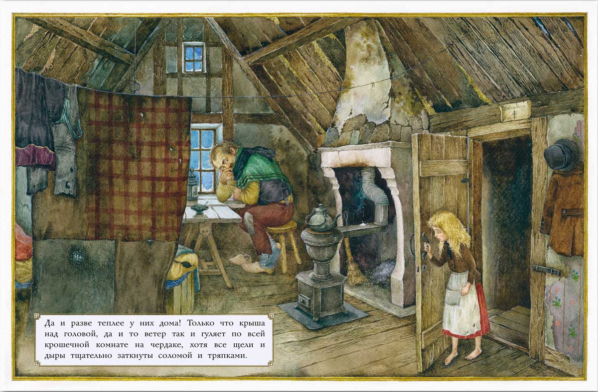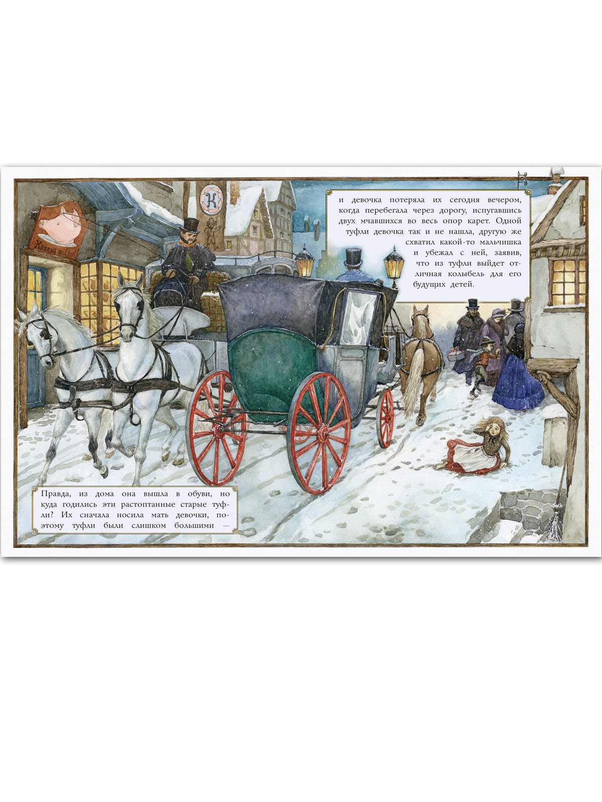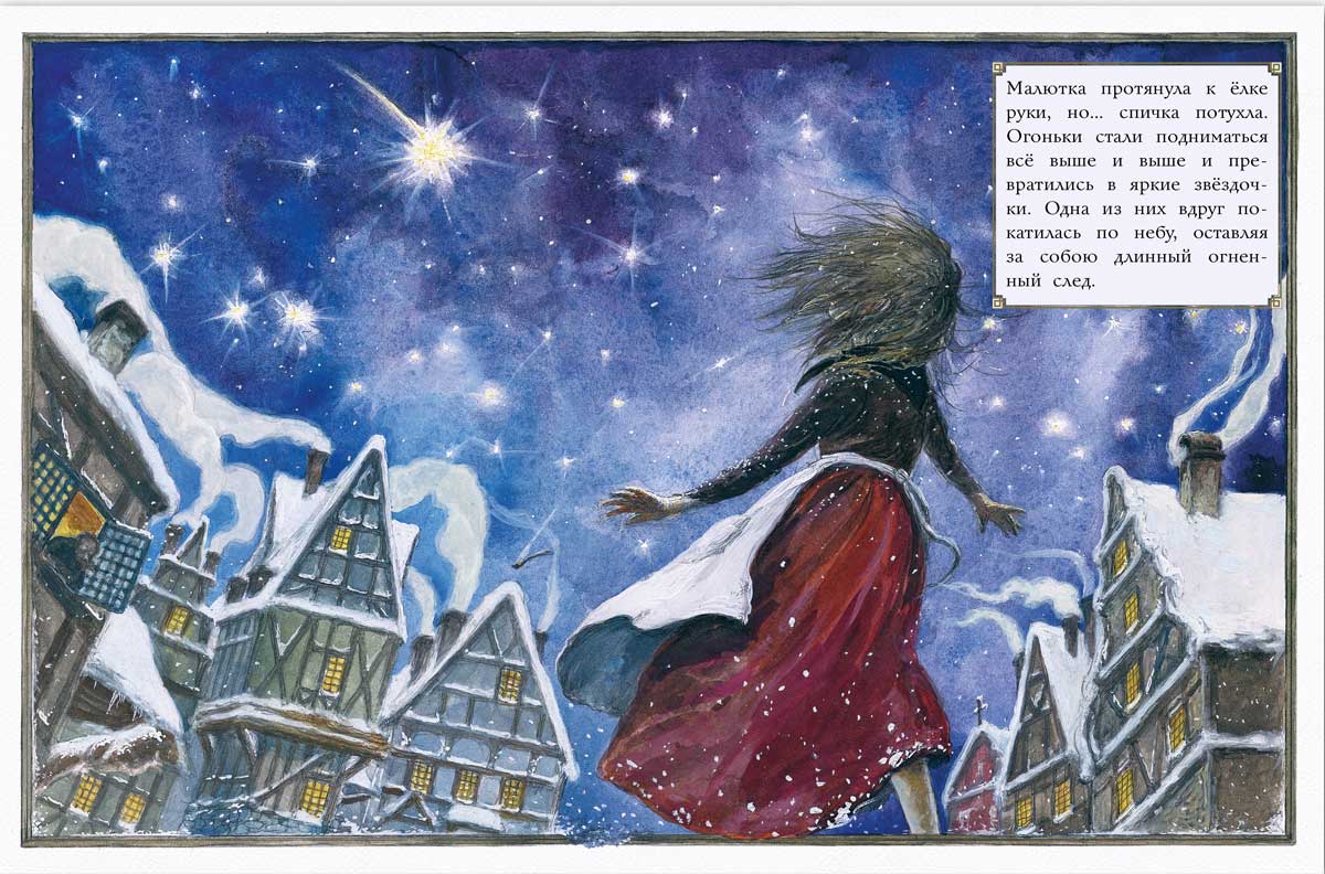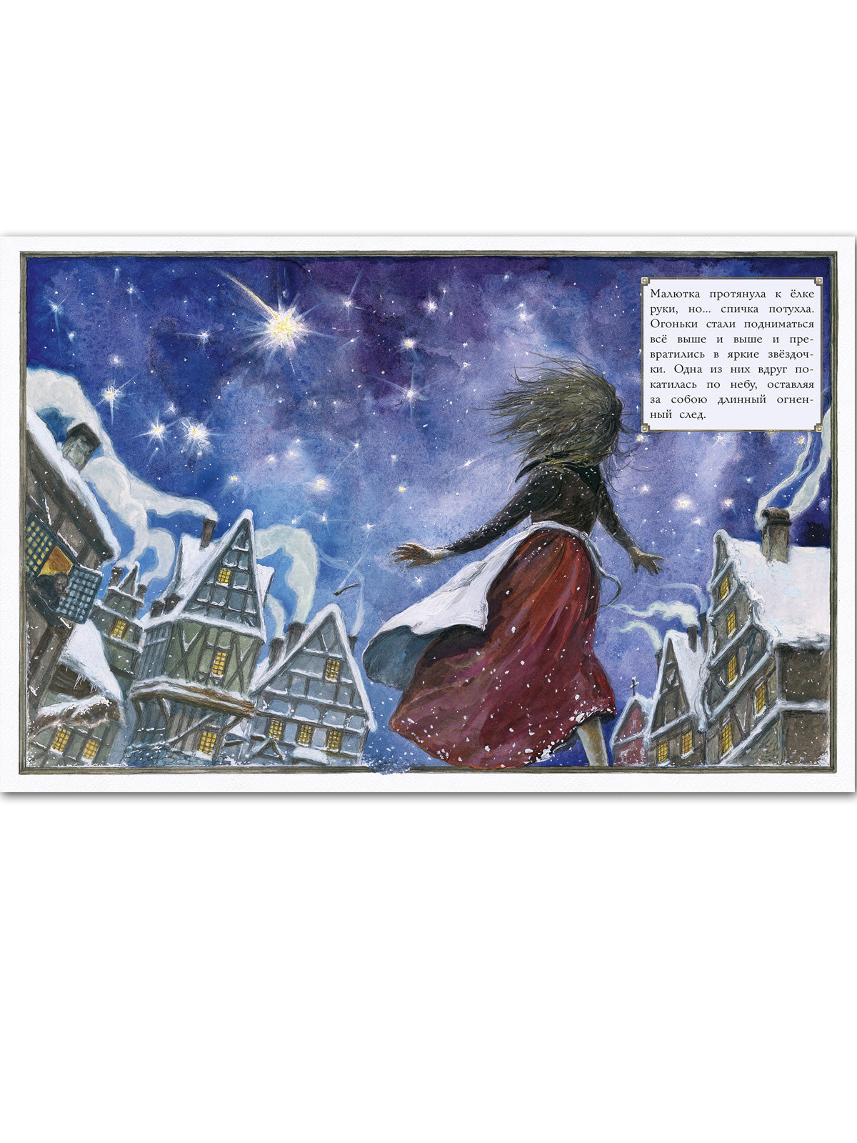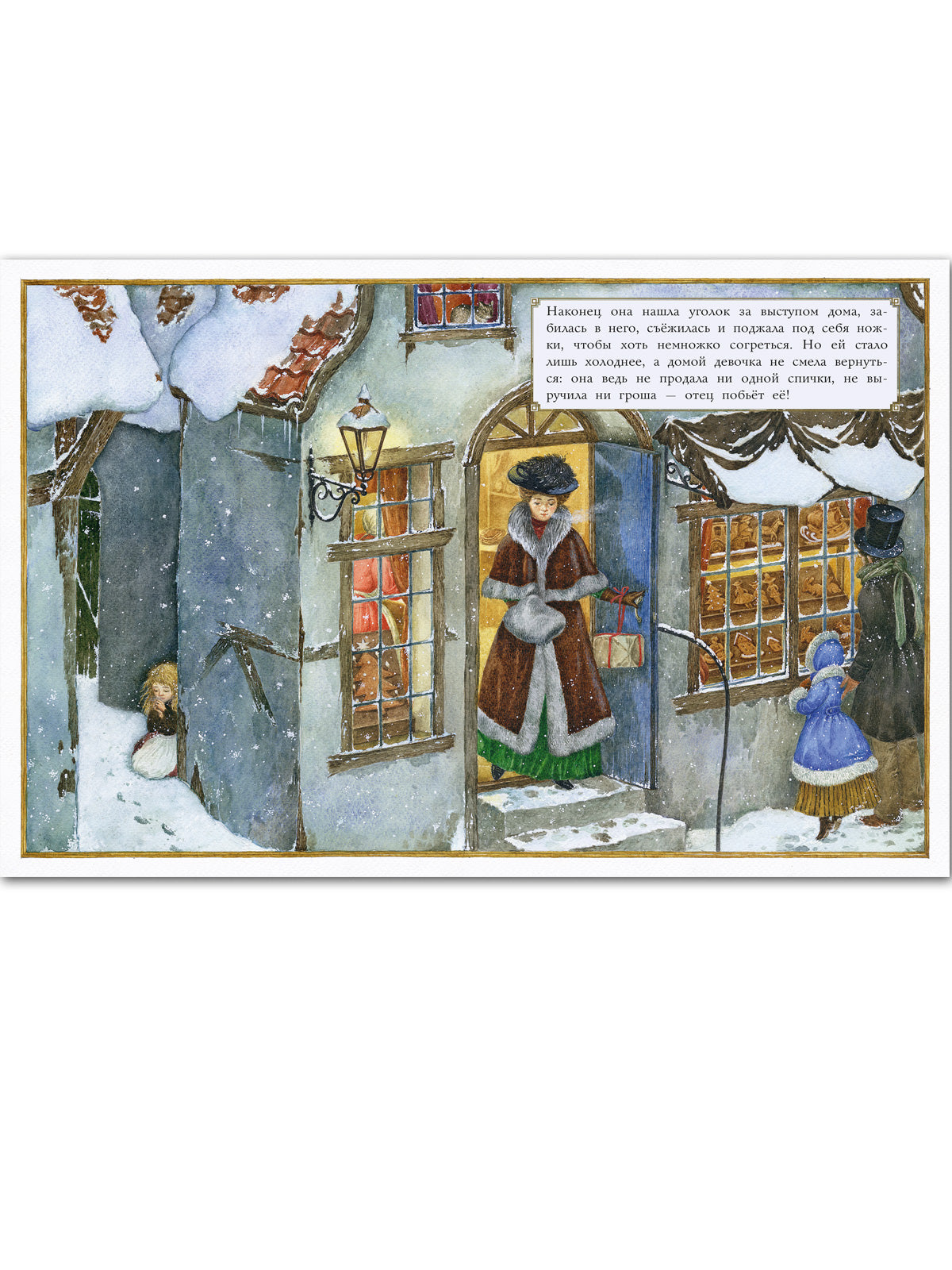 Handling time: 24 days Аннотация к книге "Девочка со спичками" Андерсен Г. Х.:«Девочка со спичками» — самая пронзительная из историй, рассказанных Г. Х. Андерсеном. Она о маленькой бедной сиротке, вынужденной продавать спички прохожим на улице. В последний день старого года девочке не удаётся продать ни единой спички, за весь день ей не подали ни гроша, и малютка не решается вернуться домой, в холодную комнату на чердаке, где её наверняка побьёт отец. Раздетая, босая, она садится за выступом дома прямо на снег и начинает одну за другой зажигать непроданные спички-свечки. В отблесках пламени девочка видит красивые картинки, которых никогда не было в её жизни: жаркую печь, праздничный стол с рождественским гусем, роскошную ёлку с тысячами свечей… С этими воображаемыми картинками девочка и возносится на Небо — «туда, где нет ни холода, ни голода, ни страха»…Художнику Людмиле Пипченко, создавшей рисунки специально для нынешнего издания, удалось передать эту щемящую новогоднюю историю. Светлые слёзы сострадания подступают к горлу, стоит раскрыть книгу… Читать дальше…