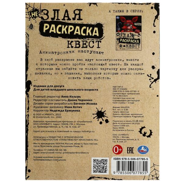 Аниматроники наступают. Не Злая раскраска КВЕСТ. 214х290 мм. Скрепка. 8 стр. Умка в кор.50шт