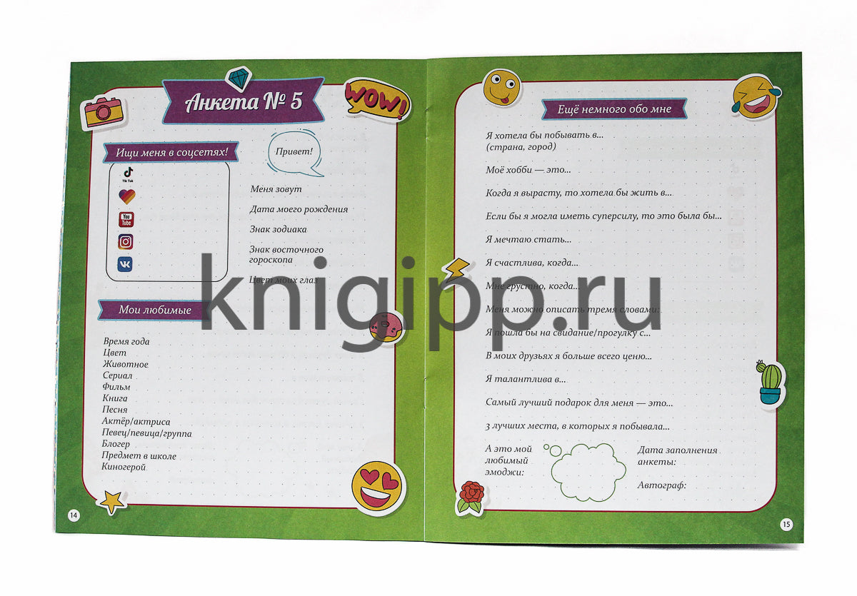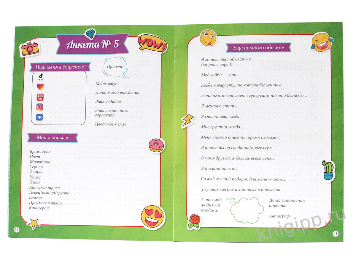 Handling time: 14 days Серия "Анкета-точкабук для девочек" - это стильные и яркие дневнички для подружек. Внутри брошюры - красивое и милое оформление и линовка в точку. В дневничке девчонки найдут тесты, опросники, анкеты и несколько идей о том, как развлечься с подругами. Анкета-точкабук поместится практически в любую сумочку и не займёт много места. А это значит, что маленьким подружкам точно не придётся скучать!