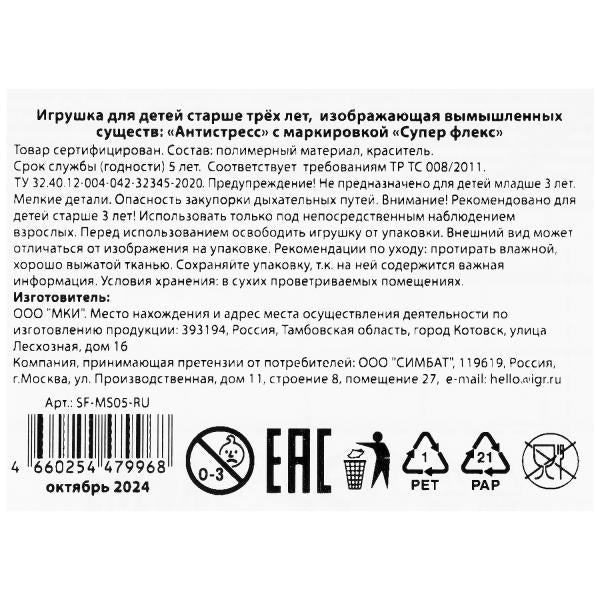 Handling time: 24 days Игрушка "Антистресс тянучка, блистер Супер Флекс в кор.8шт". Размер: 0.011.
