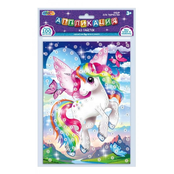 Игрушка "Аппликация из пайеток в пакете 17*23 см единорог МУЛЬТИ АРТ в кор.100шт". Размер: 0.01271.