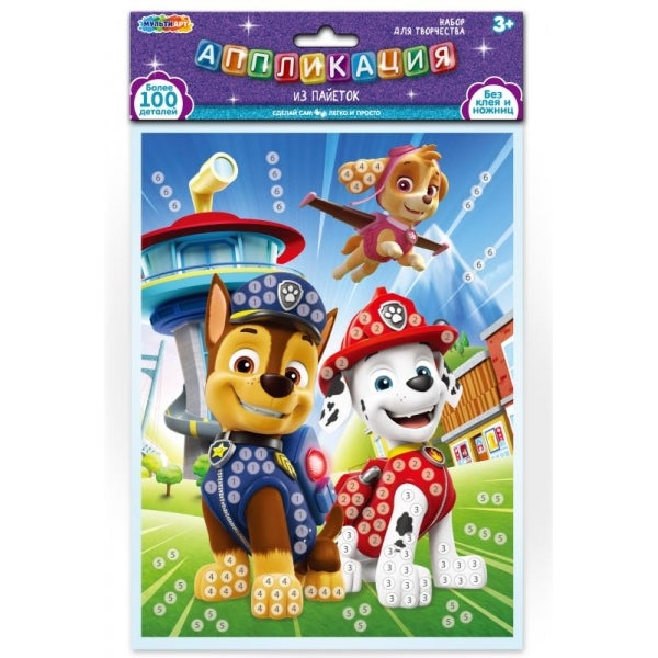 Аппликация из пайеток в пакете 17*23 см Щенячий Патруль МУЛЬТИ АРТ в кор.100шт