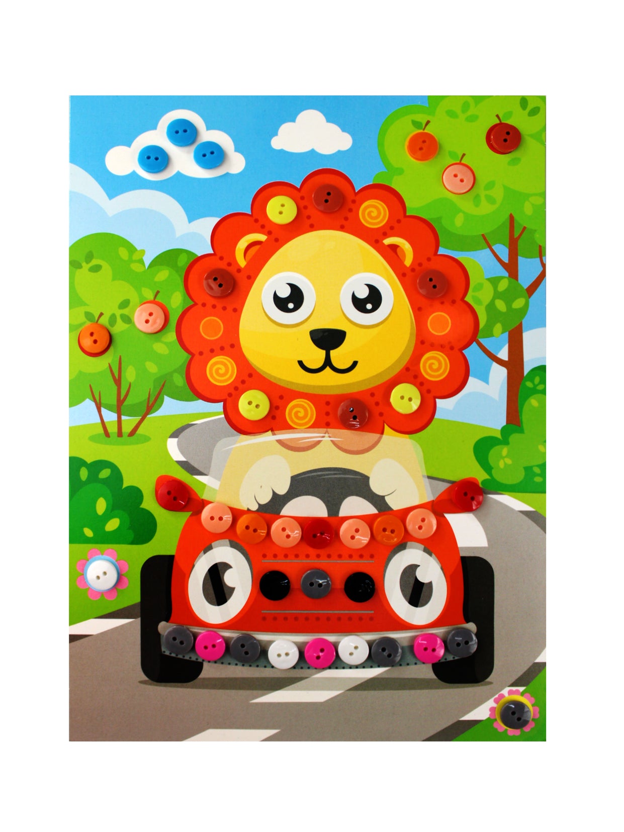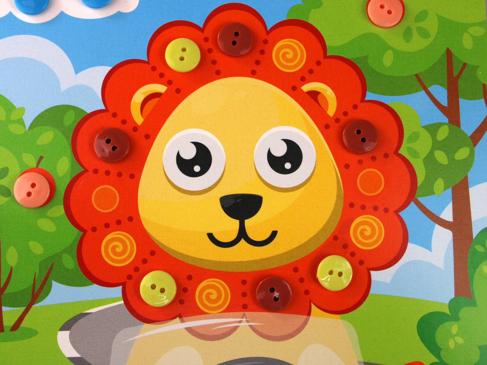 Handling time: 24 days Аппликация из пуговиц «Львёнок». Состав: цветная картинка-основа – 1 шт. (18 х 25 см)цветные пуговицы, 10 цветов – 42 шт. (диаметр 1 см.)Возраст: от 3 лет. Материал: картон, пластик. Набор развивает творческие способности ребёнка, внимание, усидчивость и мелкую моторику.
