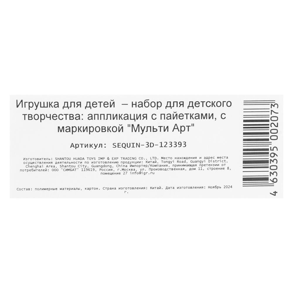 Handling time: 24 days Игрушка "Аппликация пайетками 3D енотик МУЛЬТИ АРТ в кор.100шт". Размер: 0.009315.