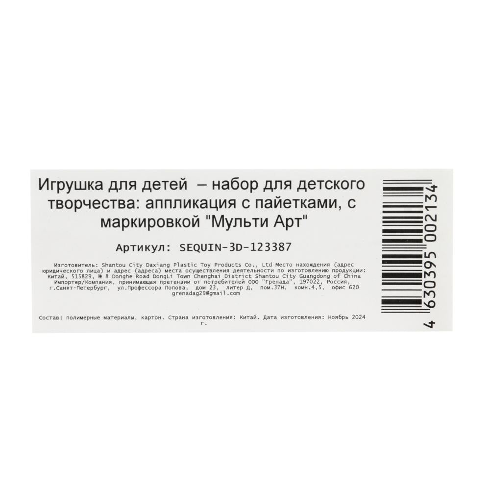 Игрушка "Аппликация пайетками 3D Мэри МУЛЬТИ АРТ в кор.100шт". Размер: 0.009315.
