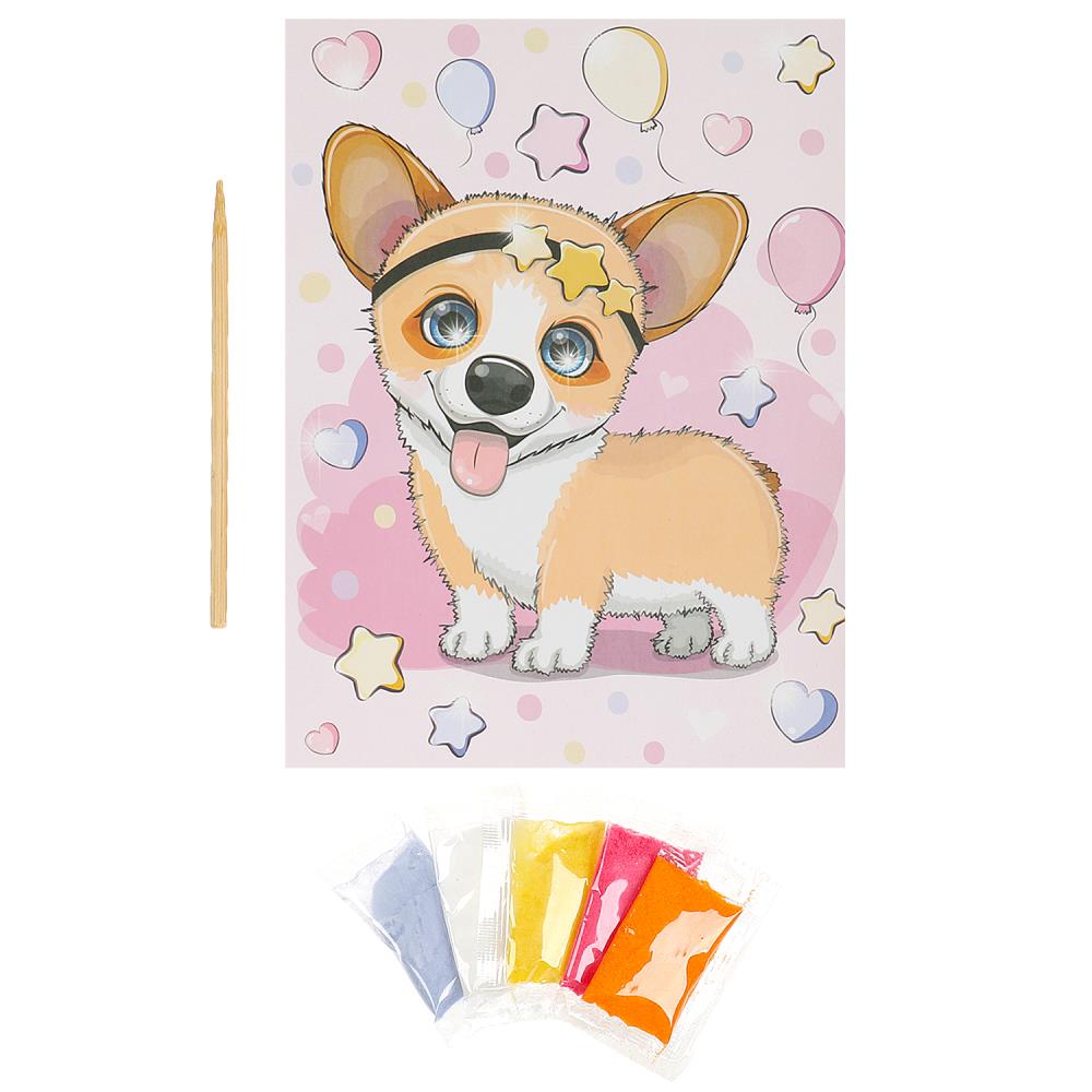 Аппликация песком 17*23 см корги МУЛЬТИ АРТ в кор.100шт