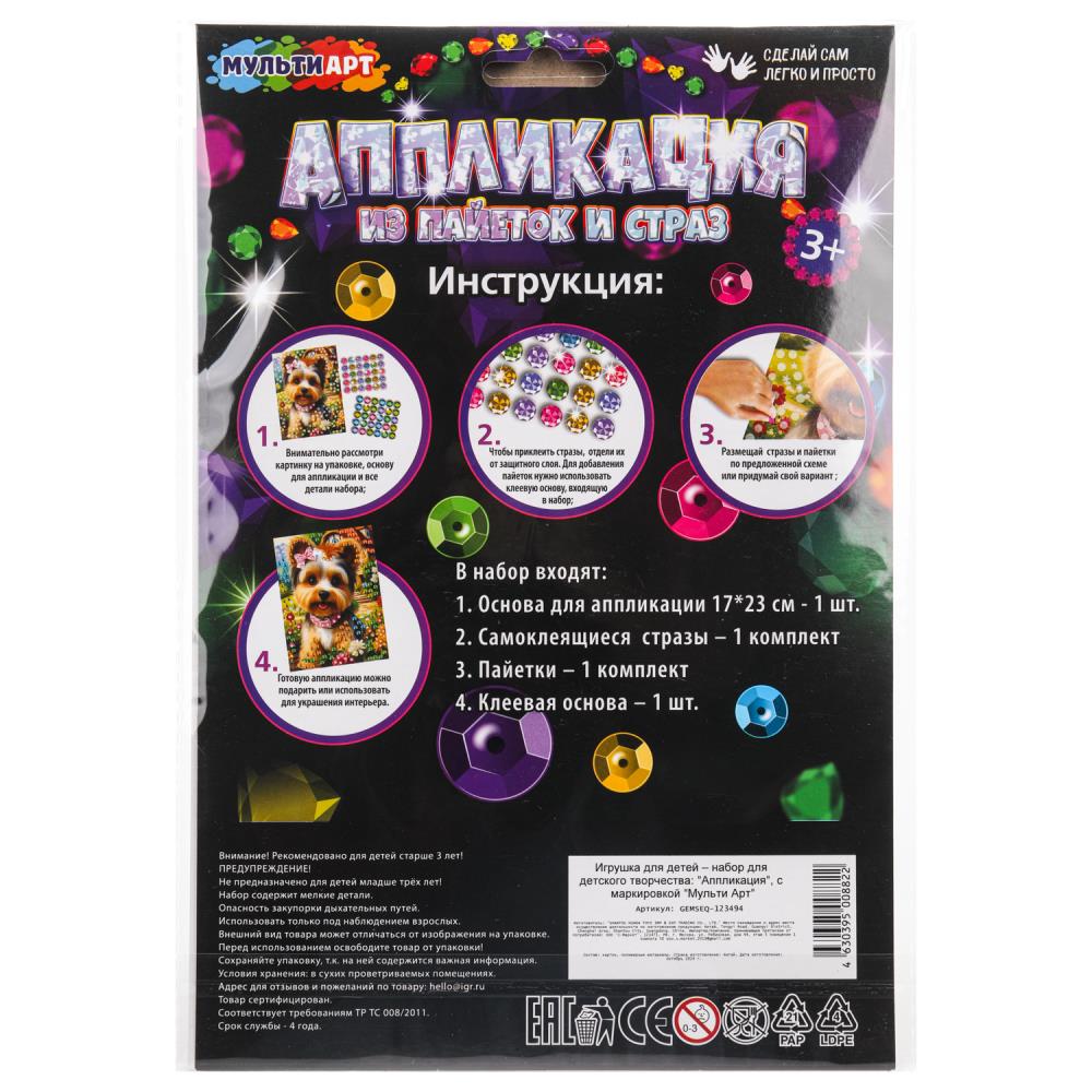 Handling time: 14 days Игрушка "Аппликация Со стразами и пайетками йорк МУЛЬТИ АРТ в кор.100шт". Размер: 0.017632.