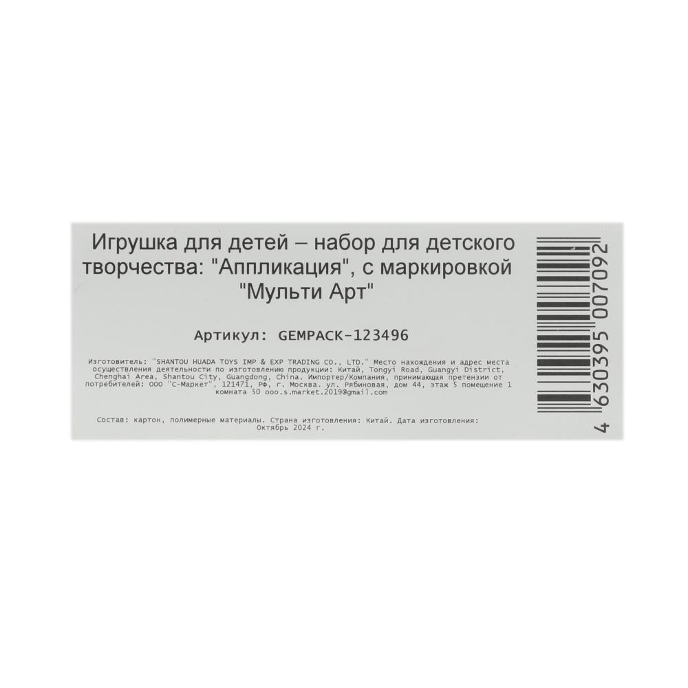 Handling time: 14 days Игрушка "Аппликация стразами в пакете 15*21 МУЛЬТИ АРТ в кор.100шт". Размер: 0.006.
