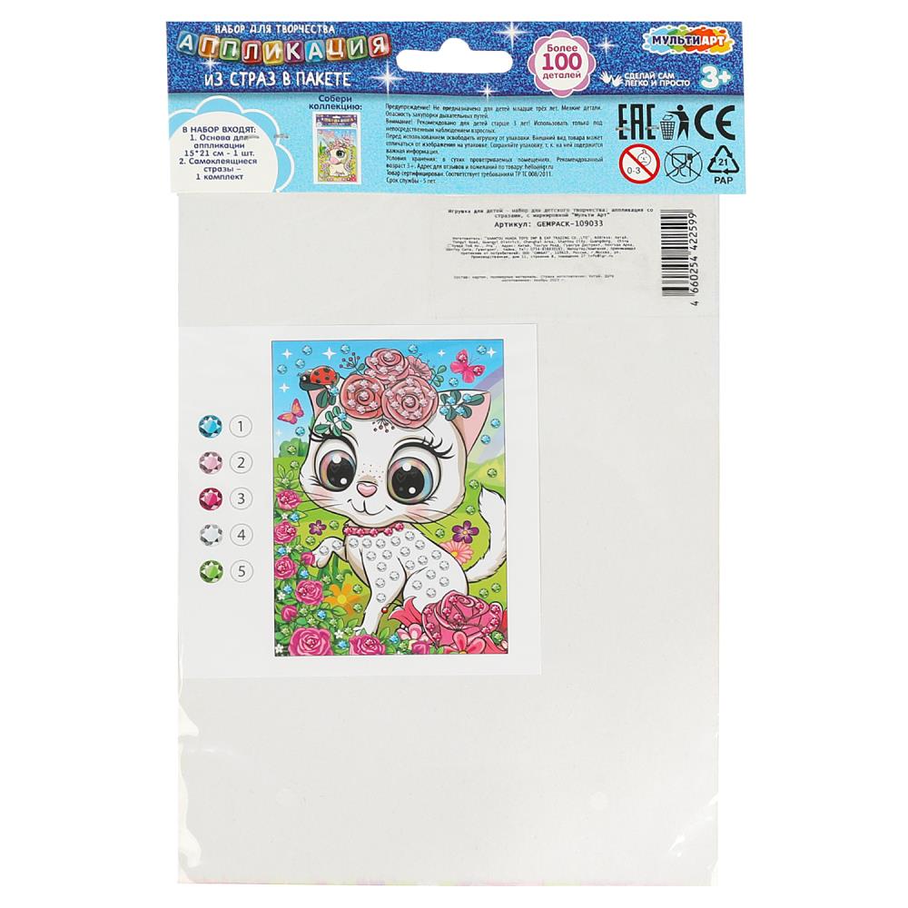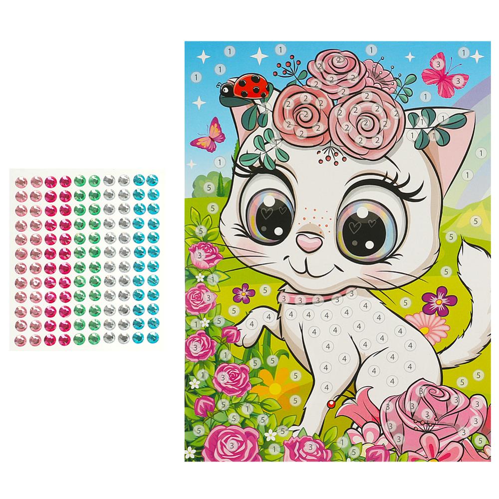 Аппликация стразами в пакете 15*21 см кошечка МУЛЬТИ АРТ в кор.100шт