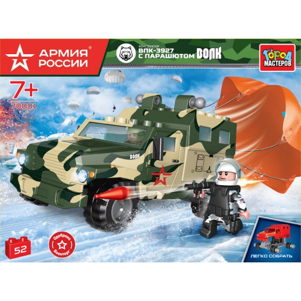 АРМИЯ РОССИИ конструктор БРОНЕМАШИНА волк на парашюте, 52 дет. Город мастеров в кор.2*8шт