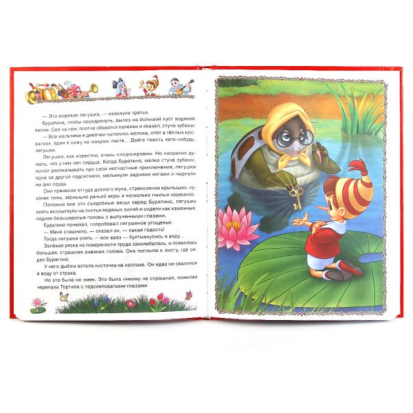 В серию "Детская библиотека" вошли русские народные сказки, потешки, знакомые всем с детства стихи и интересные истории по весёлым мультфильмам. Читайте волшебную сказку А.Н. Толстого о невероятных приключениях деревянного мальчика Буратино и его замечательных друзей - Мапьвины, Пьеро и отважного пуделя Артемона.