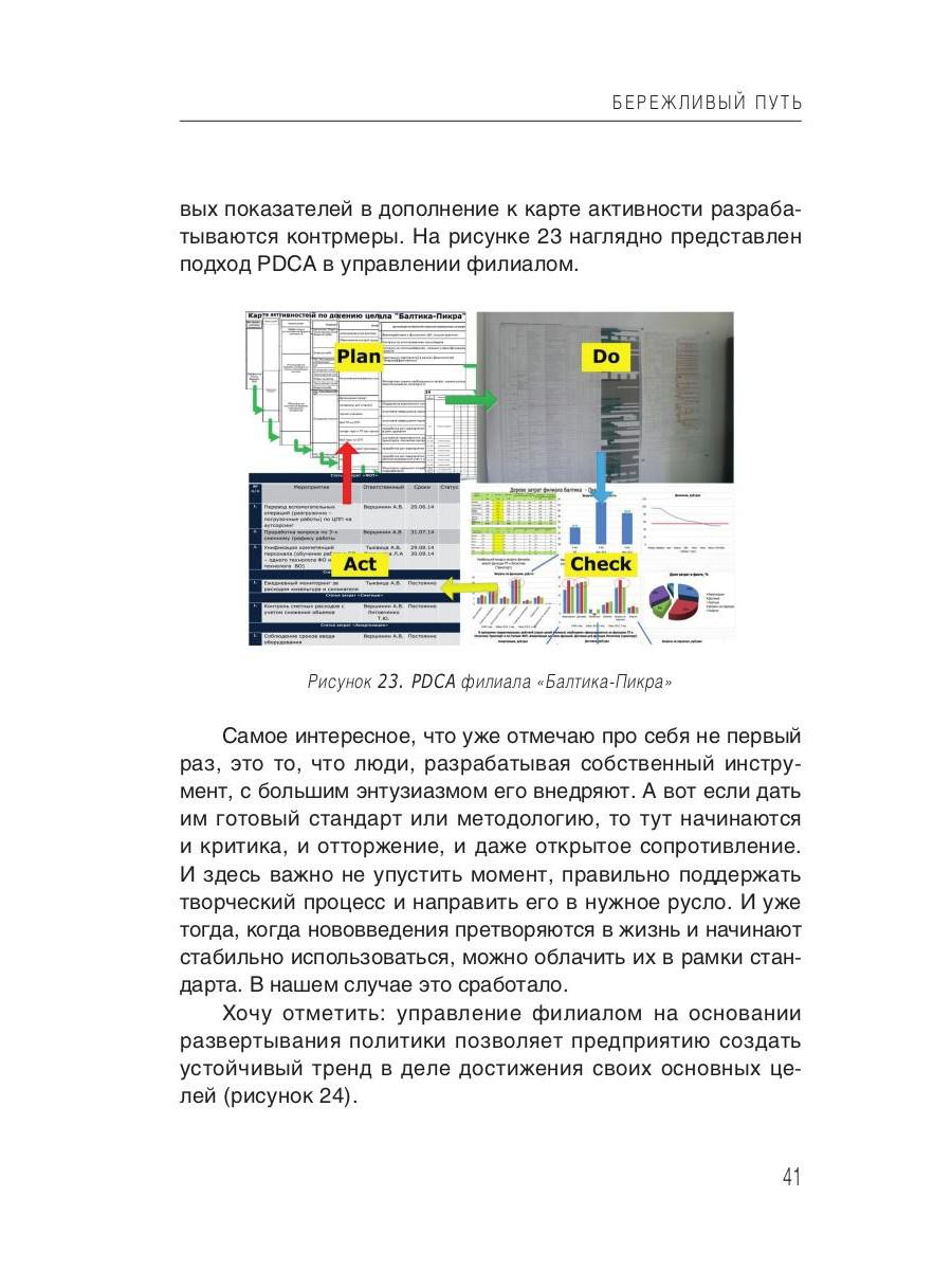 Автор: Панов И., «Бережливый путь»: Книга об опыте внедрения бережливого производства в России. Описана практика внедрения на российских предприятиях и предприятиях с иностранным капиталом. Будет полезна менеджерам, желающим внедрить или внедряющим методы непрерывного совершенствования, основанные на Lean технологиях.