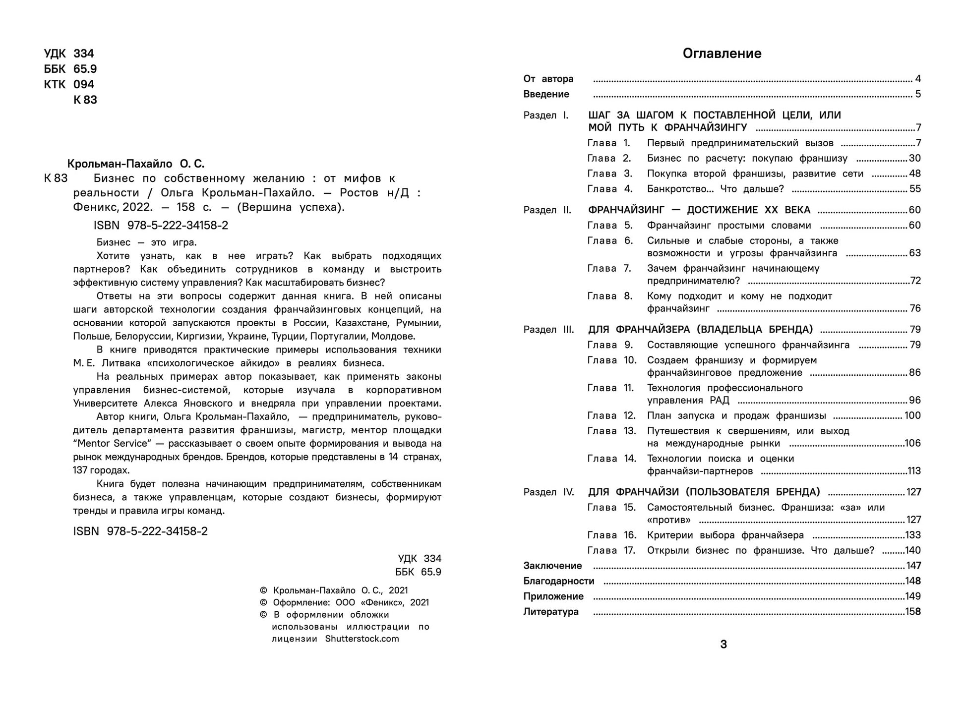 Ответы на эти вопросы содержит данная книга. В ней описаны шаги авторской технологии создания франчайзинговых концепций, на основании которой запускаются проекты в России, Казахстане, Румынии, Польше, Белоруссии, Киргизии, Украине, Турции, Португалии, Молдове.