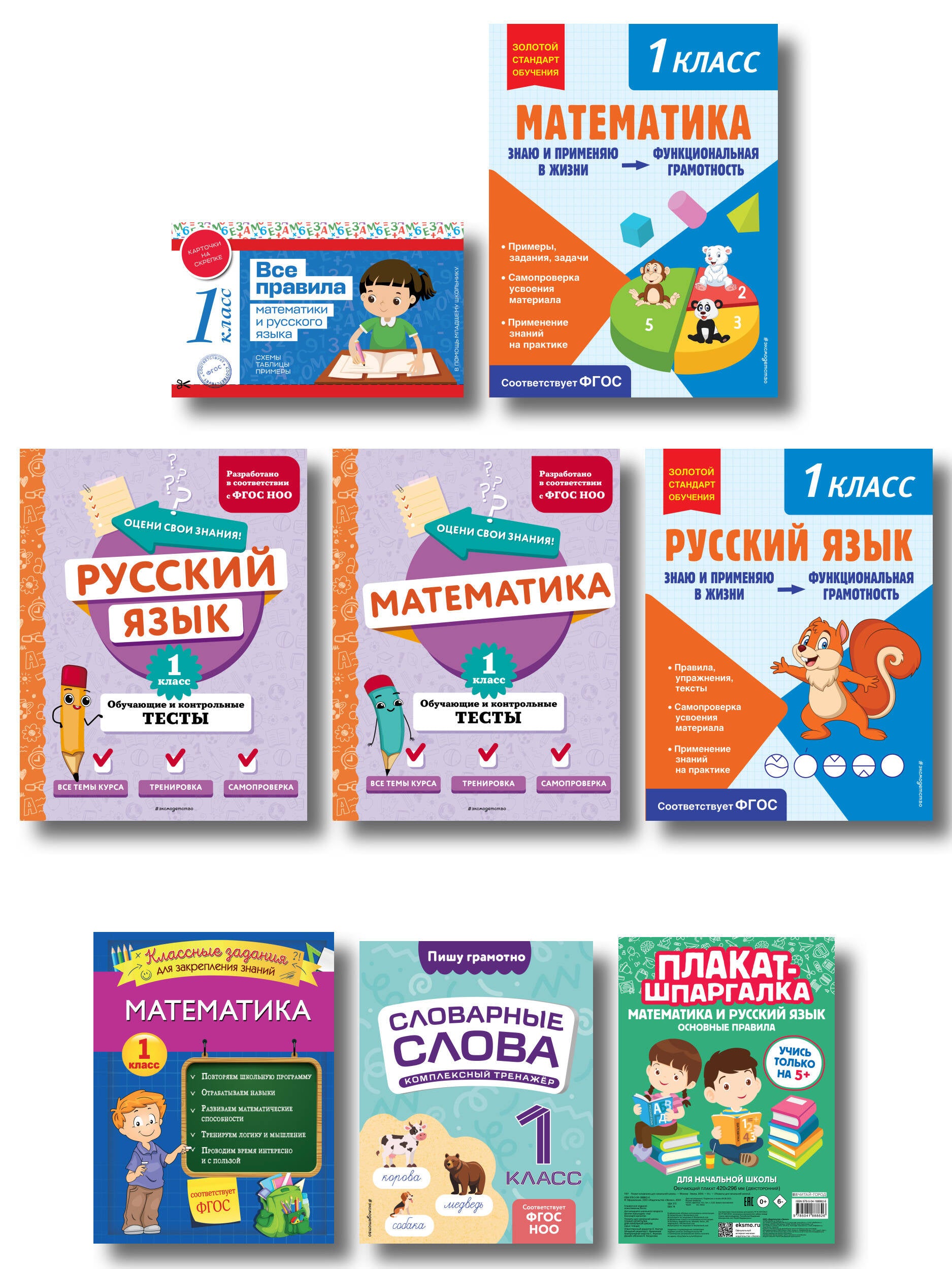 Handling time: 14 days В комплект «Большой подарок первокласснику» вошли тренажеры и книги справочного характера для самых младших школьников. Развивающие издания по русскому языку и математике помогут ученику 1 класса закрепить полученную в школе информацию и научат применять ее на практике. Изучение правил и выполнение заданий в виде тестов и проверочных работ по главнейшим предметам начальной школы гарантирует крепкие знания и высокие оценки.