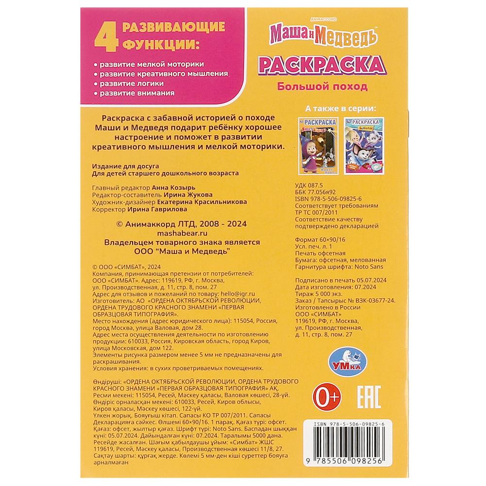 Книга "Большой поход. Маша и Медведь. Раскраска. 145х210 мм. Скрепка. 16 стр. Умка в кор.50шт". Издательство: Умка.