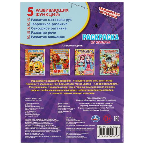 Вампирская вечеринка. Первая раскраска по номерам А4. 214х290 мм. 16 стр. Умка в кор.50шт