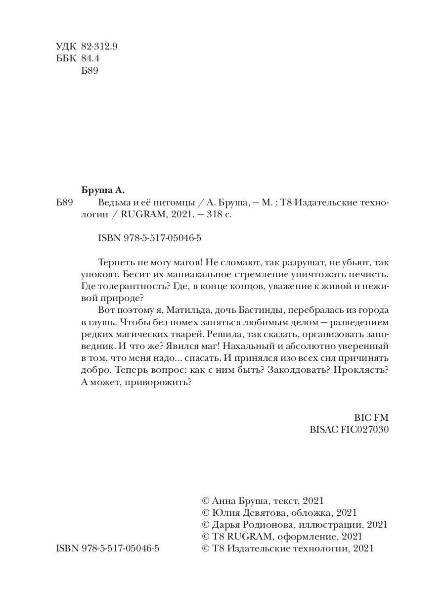 Handling time: 19 days Терпеть не могу магов! Не сломают, так разрушат, не убьют, так упокоят. Бесит их маниакальное стремление уничтожать нечисть. Где толерантность? Где, в конце концов, уважение к живой и неживой природе?Вот поэтому я, Матильда, дочь Бастинды, перебралась из города в глушь. Чтобы без помех заняться любимым делом - разведением редких магических тварей. Решила, так сказать, организовать заповедник. И что же? Явился маг! Нахальный и абсолютно уверенный в том, что меня надо... спасать. И принялся изо всех сил причинять добро. Теперь вопрос: как с ним быть? Заколдовать? Проклясть? А может, приворожить? Пять причин купить 1Вредная, саркастичная, могущественная, красивая, умная, талантливая, добрая, сумасбродная, любопытная, неунывающая, хитрая, веселая, очаровательная, коварная ведьма — это первая причина. 2Котизм. Просто откройте первую страницу и все поймете. 3Эта история доведет вас до сарказма. 4Когда хочется легкую книгу, которую можно прочитать за вечер. 5Магия, улучшающая настроение.