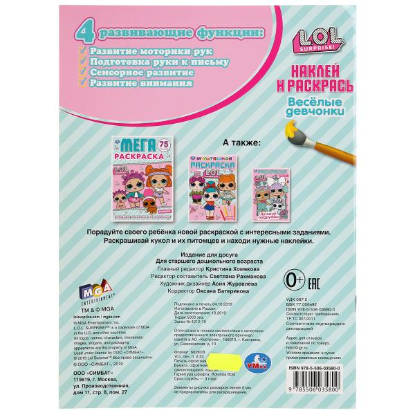 Раскраска с наклейками «LOL. Весёлые девчонки» ТМ «УМка»: