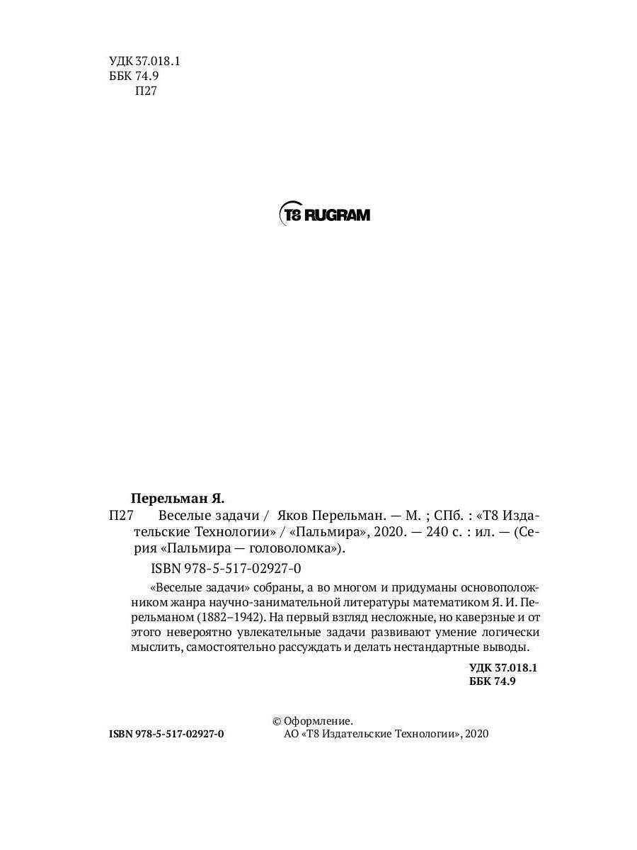 #ASTTD# Search Terms: Перельман Я.И. , Perelman Ya.I. , RUGRAM_Public Domain , RUGRAM_Public Domain , Пальмира - Головоломка , Palmira - Golovolomka , 9785517029270 , 978-5-517-02927-0 , 1624744