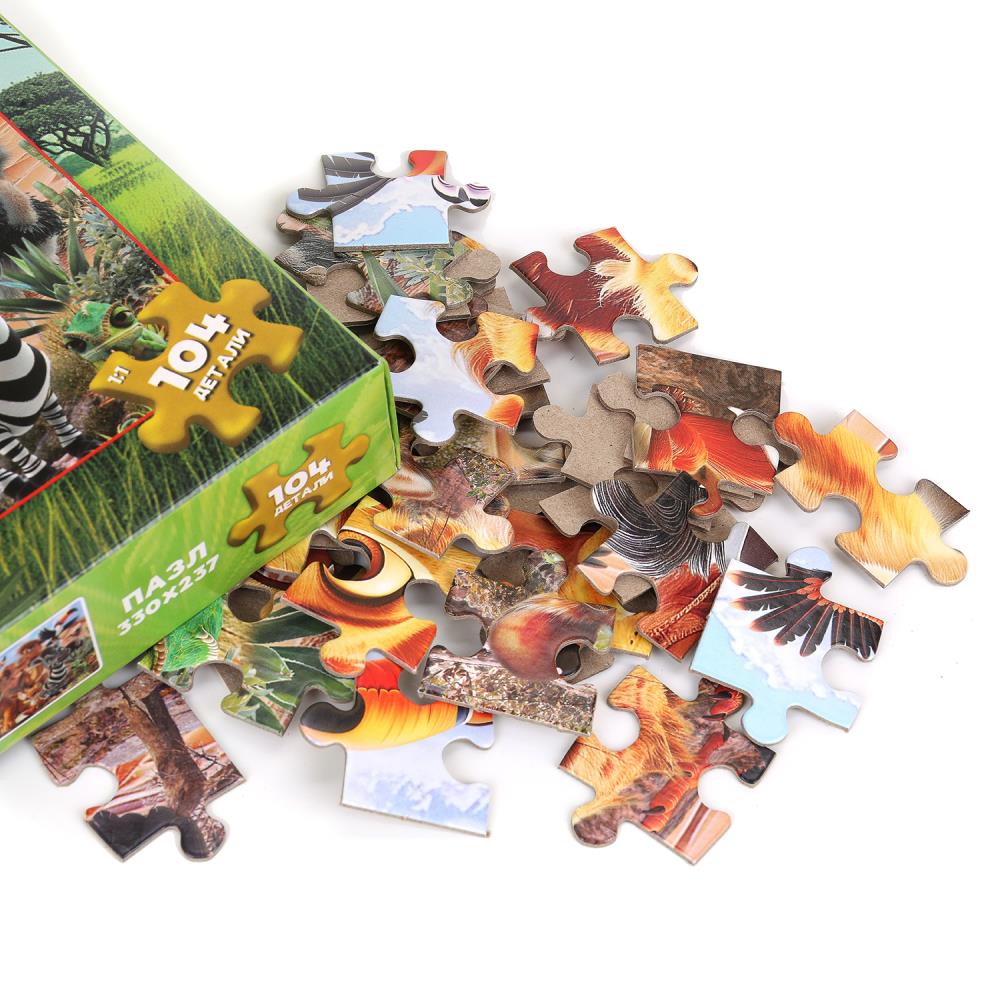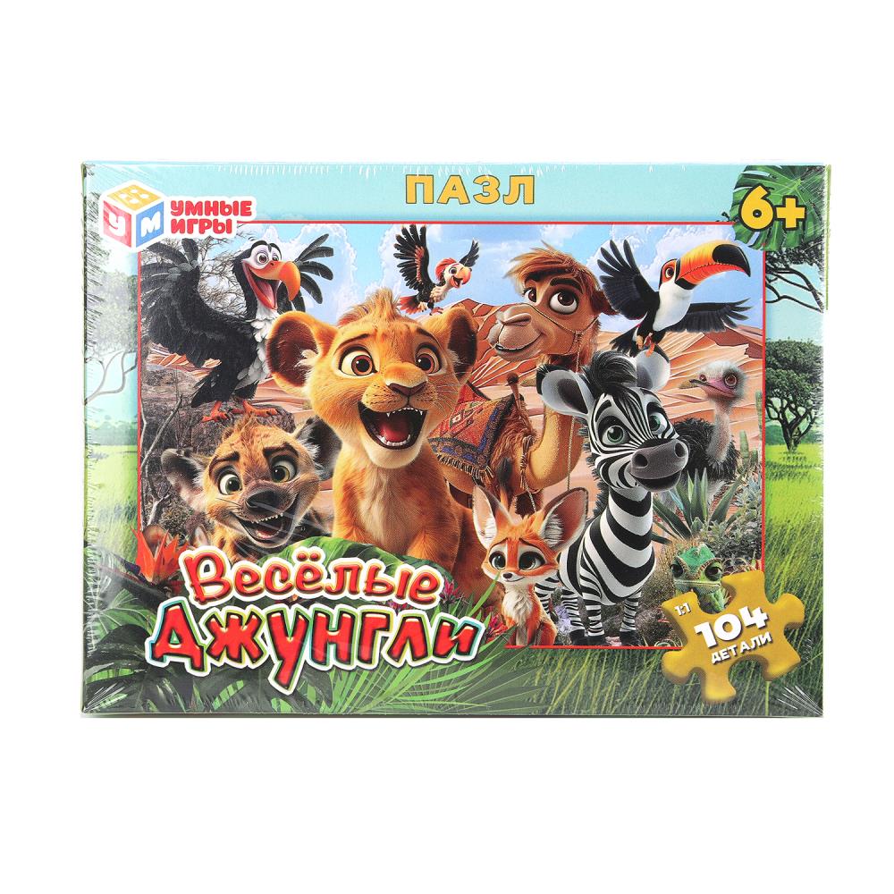 Весёлые джунгли. Пазлы в коробке 104 детали. 190х141х35 мм. Умные игры в кор.24шт