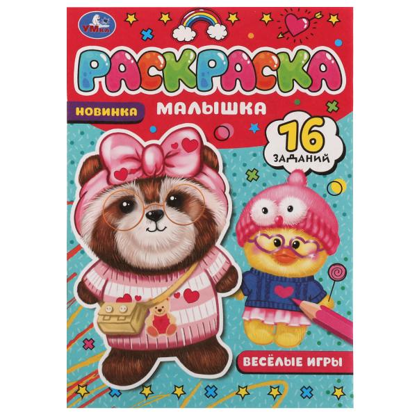 Весёлые игры. Раскраска Малышка 16 заданий. 145х210 мм. Скрепка. 8 стр. Умка в кор.100шт