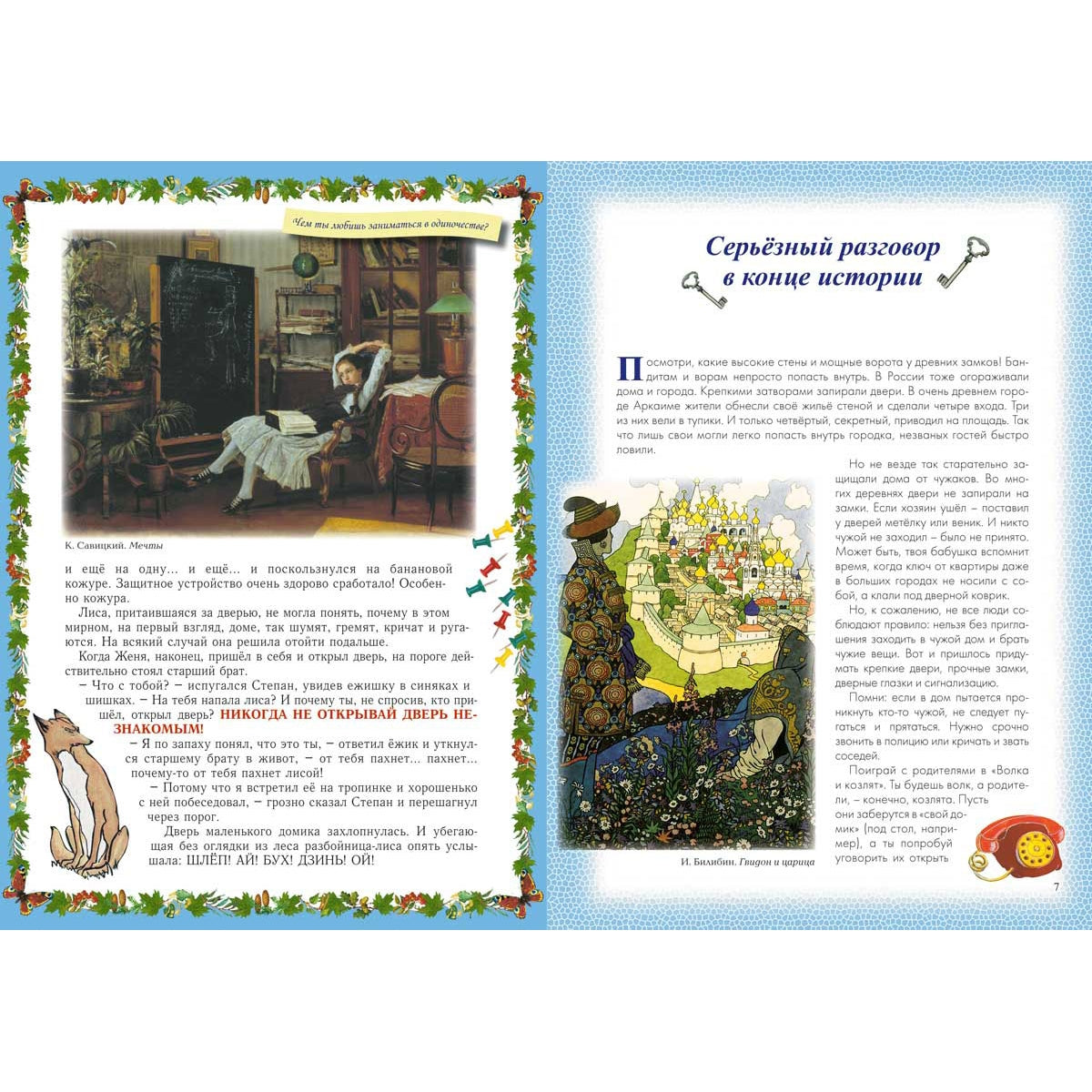 Книга оформлена картинами русских и зарубежных художников. Рисунки оформителя придадут ситуациям более забавный характер. Ребенок научится смотреть вокруг внимательно, но без страха: он знает, что делать, ведь ситуация покажется ему знакомой – он о ней читал! А, значит, его действия будут осмысленными и последовательными. Будет полезен читателю и список произведений художественной литературы российских и зарубежных авторов, из которых читатель узнает, как нужно и как не нужно поступать в минуты опасности.