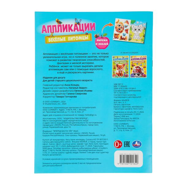 Книга "Весёлые питомцы. Аппликации. 210х290 мм. Скрепка. 16 стр. Умка в кор.50шт". Издательство: Умка.