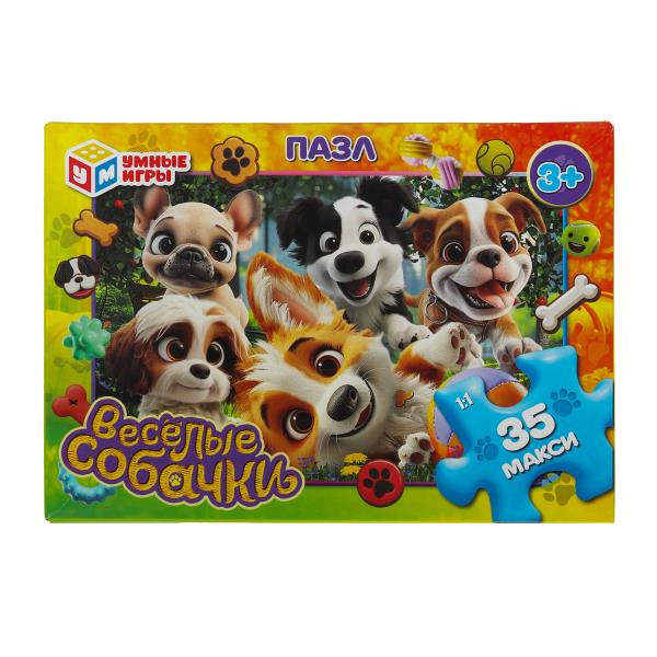 Весёлые собачки. Макси-пазлы в коробке. 35 деталей. 180х127х35 мм. Умные игры в кор.24шт