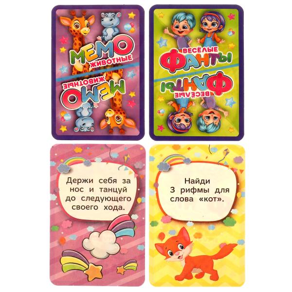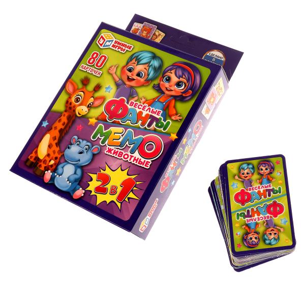 Весёлые фанты/Мемо. Животные. Карточная игра 2 в 1. 138х170х40 мм. Умные игры. в кор.50шт