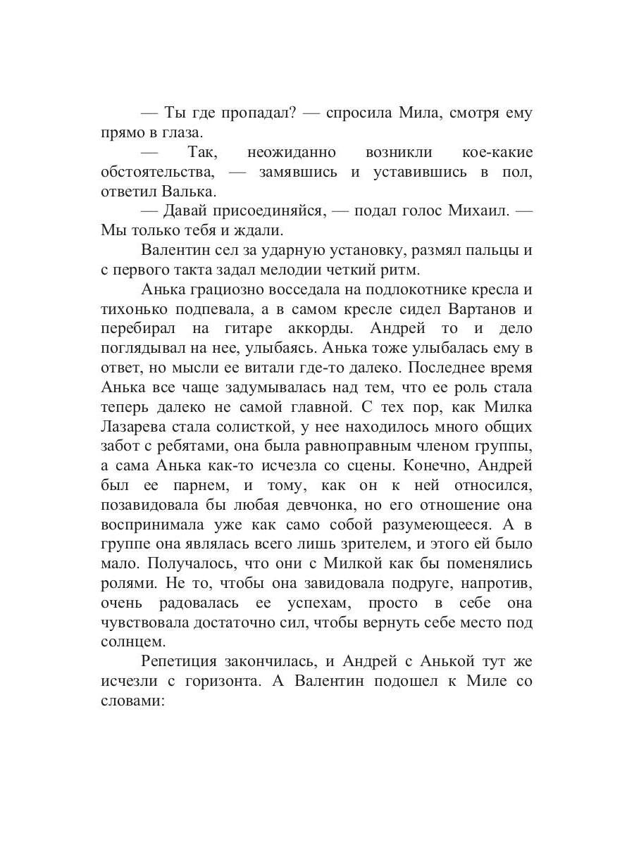 Handling time: 19 days Автор: Малинина О., «Ветряные мельницы»: Ты хочешь окунуться в атмосферу тусовок, вечеринок? А узнать много нового о жизни сверстников? Тогда водоворот событий непременно захватит тебя… Знакомство с ребятами из музыкального клуба переворачивает жизнь двух неразлучных подруг. На смену серым будням приходят любовь, ссоры, примирения, новые друзья и … музыка. Встречи, расставания, неизведанные чувства — все это ты найдешь на страницах книжной серии «Любовь для девочек».