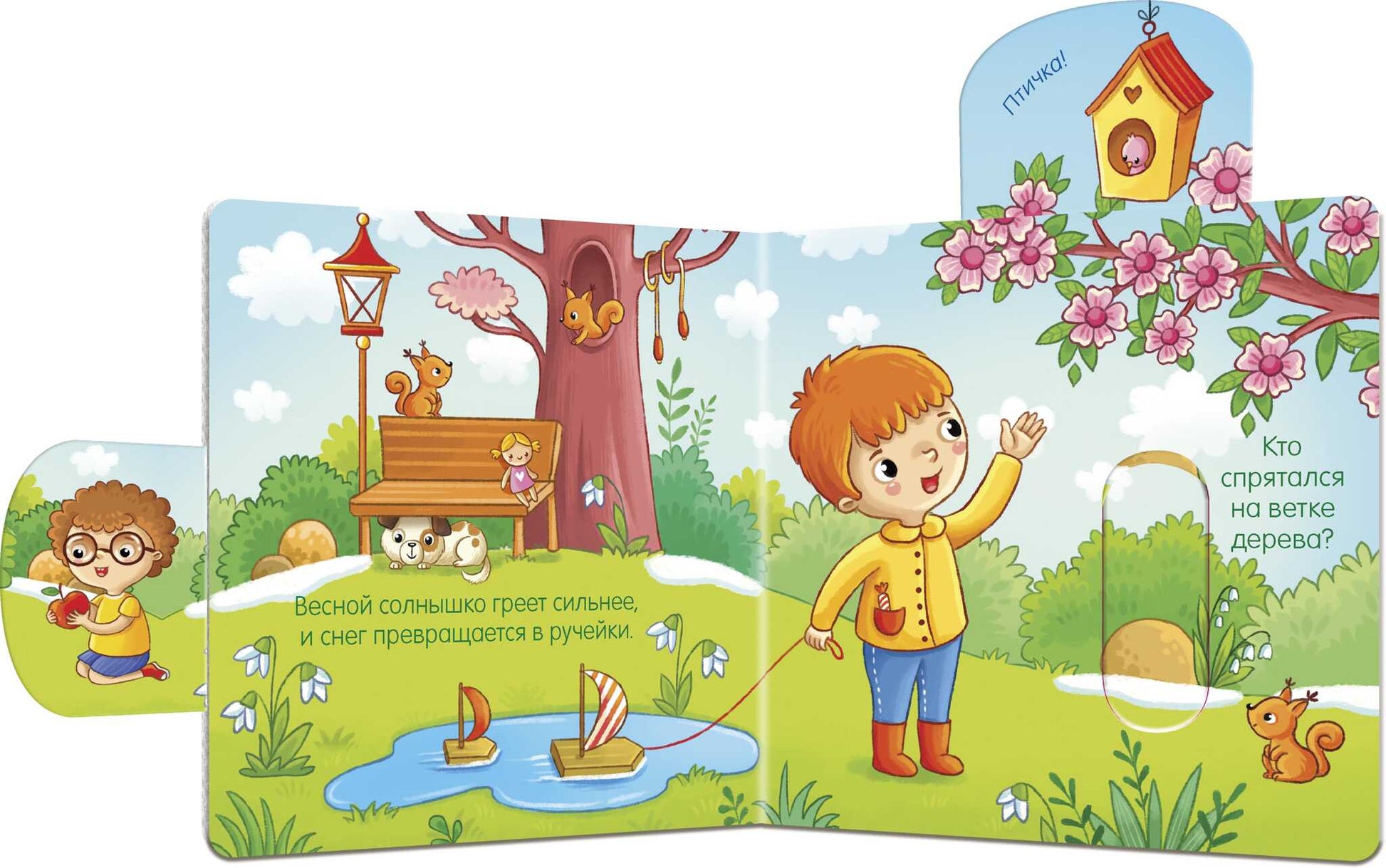 Handling time: 14 days Вжух! Времена года Как меняются времена года, какие бывают признаки? Когда желтеют листья и выпадает первый снег? Открывайте книжку, толкайте створку и ищите правильный ответ! Серия "Вжух!" - это книги, созданные для самых маленьких ручек! На каждом развороте один подвижный элемент. Плотные картонные страницы, скругленные углы - эта книжка прослужит долго и не поранит малыша.