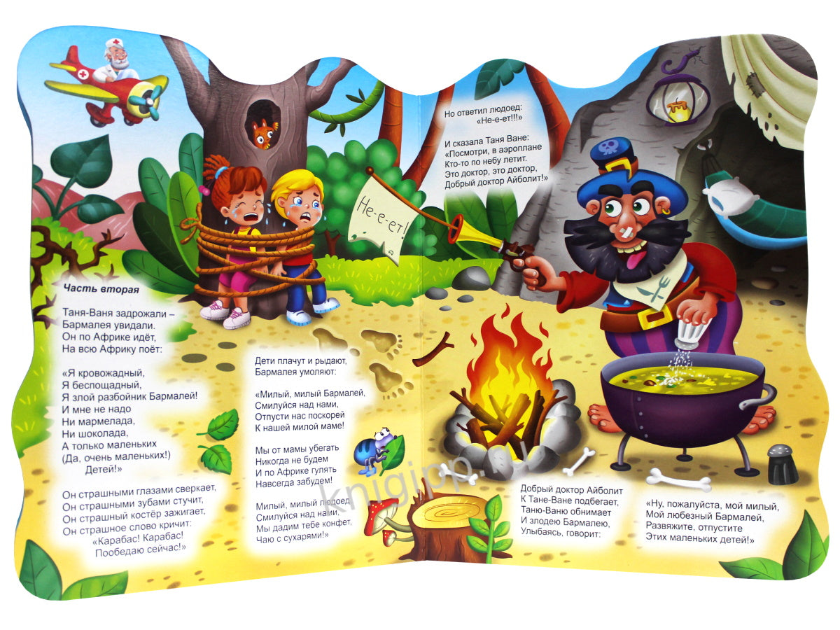 Наши новые подарочные книги А4 формата выполнены в форме вырубок. На обложке красуются пластмассовые глазки, которые обязательно привлекут внимание самых юных слушателей! Книги познакомят малышей с любимыми персонажами Корнея Чуковского. Сказочную историю в книге сопровождают новые красочные иллюстрации. Они обязательно подарят детям хорошее настроение и массу положительными эмоций.Для чтения взрослыми детям.
