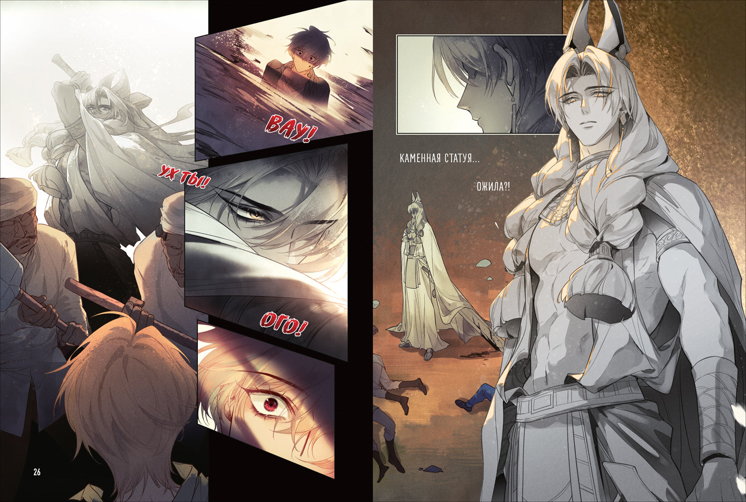 Handling time: 14 days Маньхуа, вдохновленная египетской мифологией, – один из самых популярных проектов на платформе Kuaikan Manhua.Чжан Ли не верит в чудеса, но твердо знает: у ожившей статуи, что спасла ему жизнь в древних руинах, каменная кожа и добрая душа.Чжан Ли не верит в путешествия во времени, но, попав в прошлое, с ужасом понимает: прототипом прекрасной статуи стал тиран с каменным сердцем, не знающим жалости.Почему король и его статуя так отличаются друг от друга? Чжан Ли предстоит узнать тайну правителя… или умереть от его руки?Добро пожаловать в захватывающее путешествие на стыке двух культур и времен. Под обложкой этой книги царят жестокие законы и секреты, которые захочется разгадать каждому.