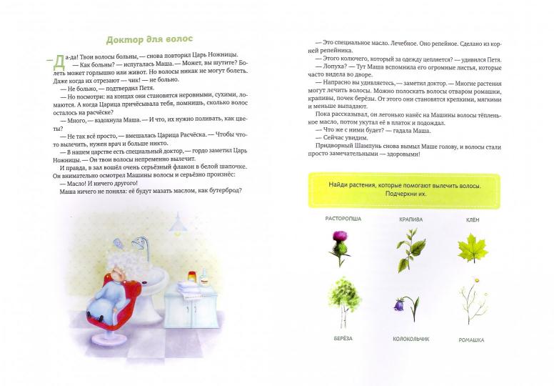 Эта книга в понятной детям форме даёт систематизированные знания о парикмахерском искусстве. В авторских сносках маленького читателя ждут экскурсы в историю этого ремесла. Ребёнок узнает о народных традициях ухода за волосами в разных странах мира.Прекрасные иллюстрации, интересные развивающие задания способствуют закреплению полученных знаний через рисование и творчество. Кроме того, сама книга представляет собой ещё увлекательнейшее путешествие брата и сестры по королевству красоты, которое ваш ребёнок прослушает буквально на одном дыхании.Книга написана богатым литературным языком, что позволит вашему ребёнку существенно обогатить свой пассивный и активный словарь.