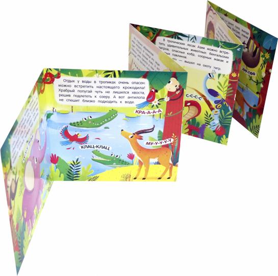 Книжка-гармошка "В жарких странах" познакомит малыша со слоном, львом, жирафом, зеброй, буйволом, тигром и другими животными африканских саванн, джунглей, Австралии и сельвы Южной Америки. Малыш сможет развить речь при помощи подражания различным звукам, которые издают дикие животные. Приведенные здесь варианты рассчитаны на развитие речи малыша. а потому условны и могут отличаться от звуков, которые животные издают в действительности. Для совместной работы с родителями.