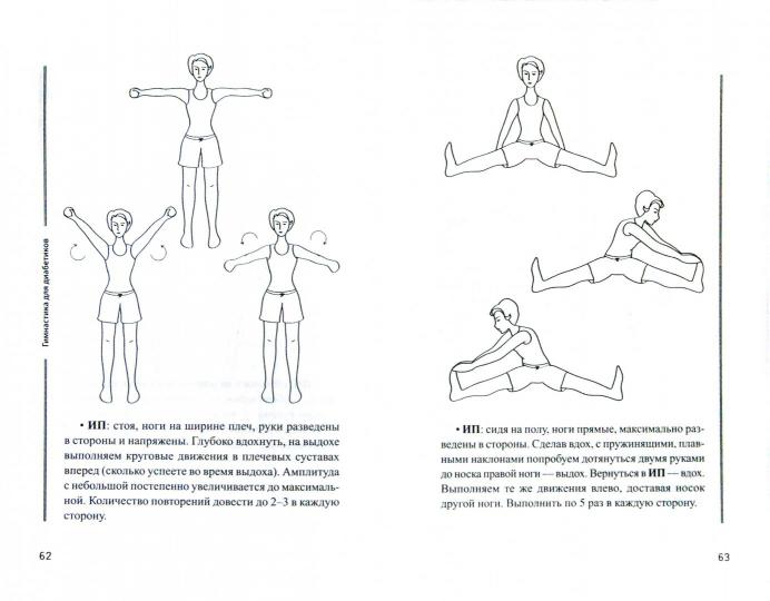 Лечебная физкультура при сахарном диабете применяется в комплексе с другими элементами лечения и играет важную роль в компенсации заболевания. Лечебная гимнастика улучшает жизненный тонус и настроение, позволяет поверить в свои силы. Подобранные специально для вас комплексы упражнений помогут нормализовать все обменные процессы в вашем организме: самое важное - нарушенный углеводный, жировой и белковый обмен. А значит, вы имеете все шансы избежать развития сопутствующих сахарному диабету заболеваний и опасных для жизни осложнений. Исследования подтвердили: физические упражнения при сахарном диабете приводят к понижению уровня сахара в крови, в некоторых случаях - до нормальных величин.