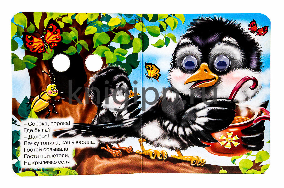 Handling time: 24 days Замечательная серия картонных книг с глазками обязательно порадует вашего малыша. Такая книжка станет любимой игрушкой ребёнка. Страницы сделаны из плотного картона, поэтому издание прослужит долго, не порвётся и не испортится. В книгах серии вы найдёте самые любимые сказки, стихи и потешки.