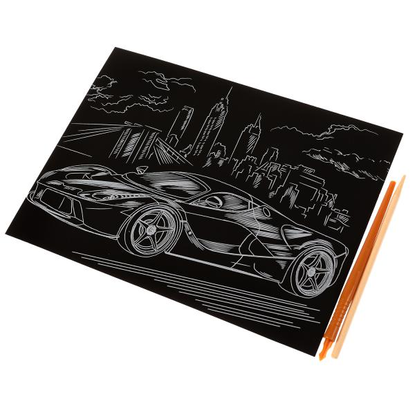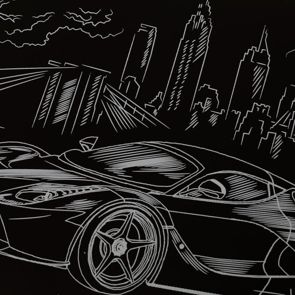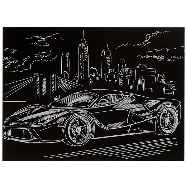 Гравюра 18*24 см машина, серебряная МУЛЬТИ АРТ в кор.120шт
