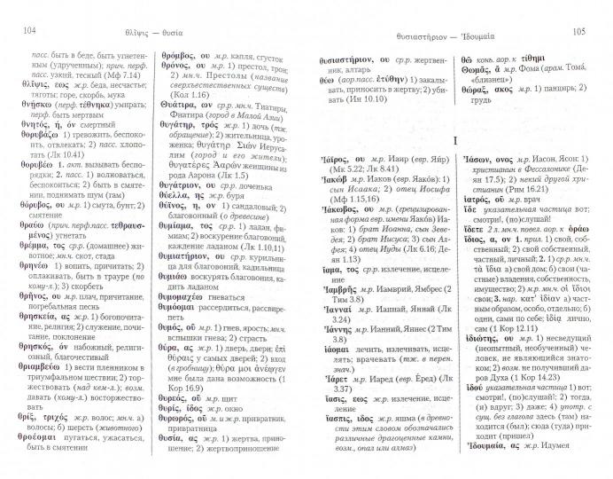 Handling time: 19 days Греческо-русский словарь Нового Завета представляет собой перевод Краткого греческо-английского словаря Нового Завета Баркли М.Ньюмана. В словарь полностью включена лексика Нового Завета (по изданию: The Greek New Testament, ed. by Barbara Aland, Kurt Aland, Johannes Karavidopoulus, Carlo M. Martini and Bruce M. Metzger. United Bible Societies, 1993) но, в отличие от словаря Ньюмана, в него не вошла лексика из критического аппарата. Значительной переработке подверглись предложные статьи: в их основу были положены, со значительными сокращениями, соответствующие статьи Бауэра. Значения отдельных слов в случае необходимости были уточнены, иногда добавлены новые значения, а также новый иллюстративный материал, особенно в предложных статьях. При подготовке перевода были использованы материалы современных комментариев к книгам Нового Завета, главным образом New International Greek Testamet Commentary, World Biblical Commentary, The International Critical Commentary, The New International Commentary on the New Testament, Black's New Testament Commentaries, The New Century Bible Commentary, The Anchor Bible, Tyndale New Testament Commentaries, а также словари: W.Bauer, W.F.Arndt, F.W.Gingrich, A Greek-English Lexicon of the New Testament and other Early Christian Literature. 2d ed. The University of Chikago Press, Ltd., London, 1979. Thayer's Greek-English Lexicon of the New Testament. Marshallton, Delawere, 1889. H.G.Lidell, R.Scott, H.S.Jones, A Greek-English Lexicon with a supplement 1968. Clarendo Press, Oxford, 1985. The Interpreter's Dictionary of the Bible. Nashvill, 1963-1976. A.Schmoller, Handkonkordanz zum griechischen Neuen Testament. 8 Auf. Stuttgart, 1990. И.Х. Дворецкий, Древнегреческо-русский словарь Т. 1-2 М.,1958. Словарь русского языка. Т. 1-4. М., 1981-1984. Словарь синонимов русского языка. Наука, Л., 1975. Словарь эпитетов русского языка. Наука, Л., 1979. Для студентов университетов и других вузов, изучающих греческий язык Нового Завета. Для специалистов, занимающихся исследованиями в области ветхозаветной и новозаветной библеистики, текстологии Нового Завета, языка Евангелий и других книг Нового Завета, библейской археологии, отдельных аспектов литургики и литургического богословия, отдельных (терминологических) аспектов догматического богословия, сравнительного богословия, основного богословия (христианской апологетики). Для филологов, занимающихся изучением новозаветных текстов, для историков, религиоведов, философов. Издание может быть использовано в качестве дополнительного справочного пособия при изучении древнегреческого языка воспитанниками и студентами духовных учебных заведений, для преподавателей древнегреческого языка в этих учебных заведениях, для студентов и аспирантов богословских вузов и факультетов.